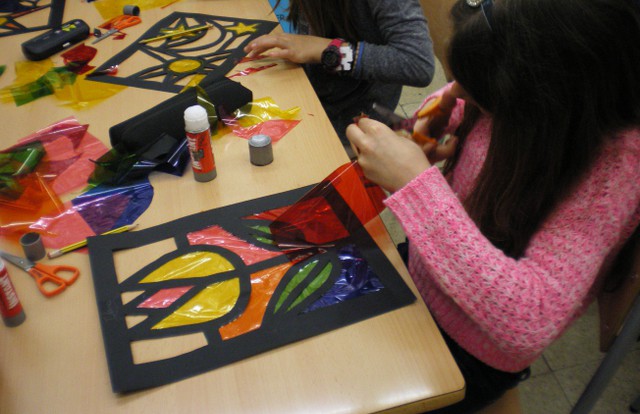 Hem construït vitralls amb cartolina i paper de cel·lofana.