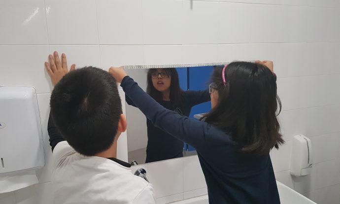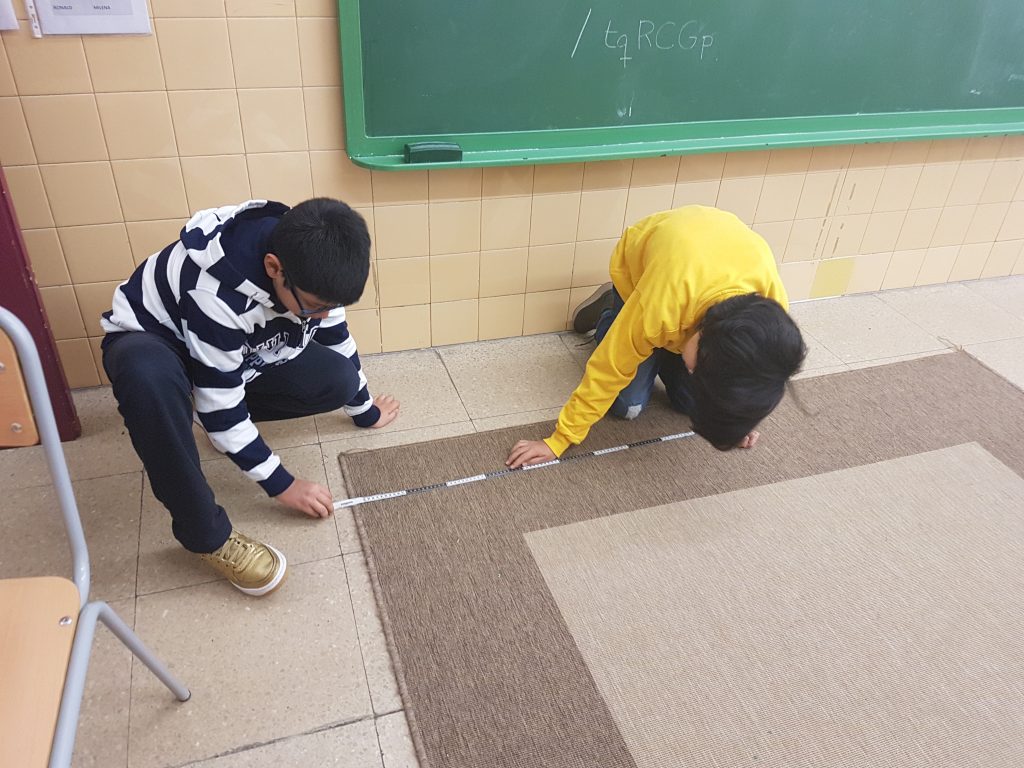 5th. and 6th. graders are practising how to calculate perimeters and areas around the school