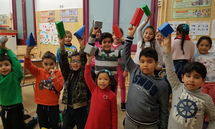 1st and 2nd graders are learning a new song about CUBE, CONE, SPHERE and CYLINDER. These are 3D SHAPES. They can practise at home!