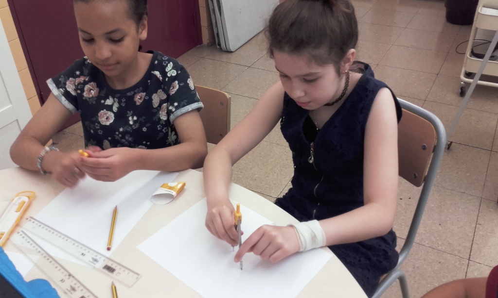 A l’espai de geometry estem fent el cercle i les diferents parts i ens hem iniciat en l’ús del compàs…tota una novetat!