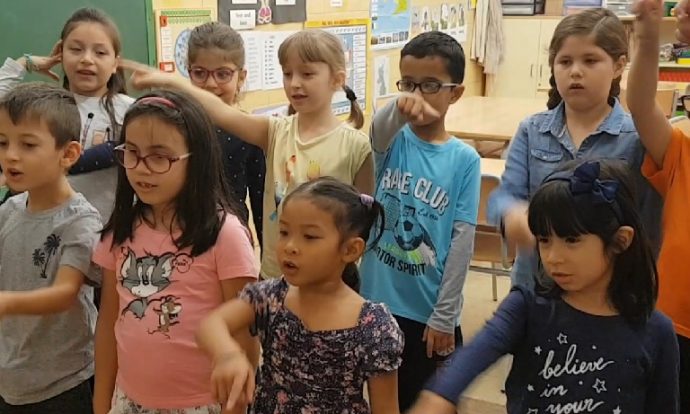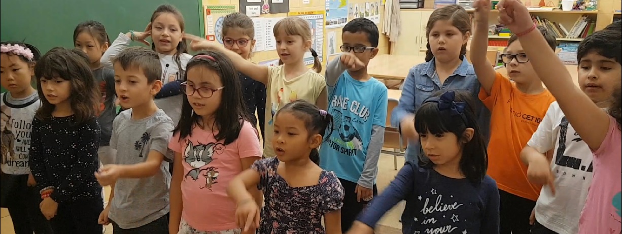 1st and 2nd graders have learnt the “Shapes Song” in English. They can practise at home. Draw a circle in the air!