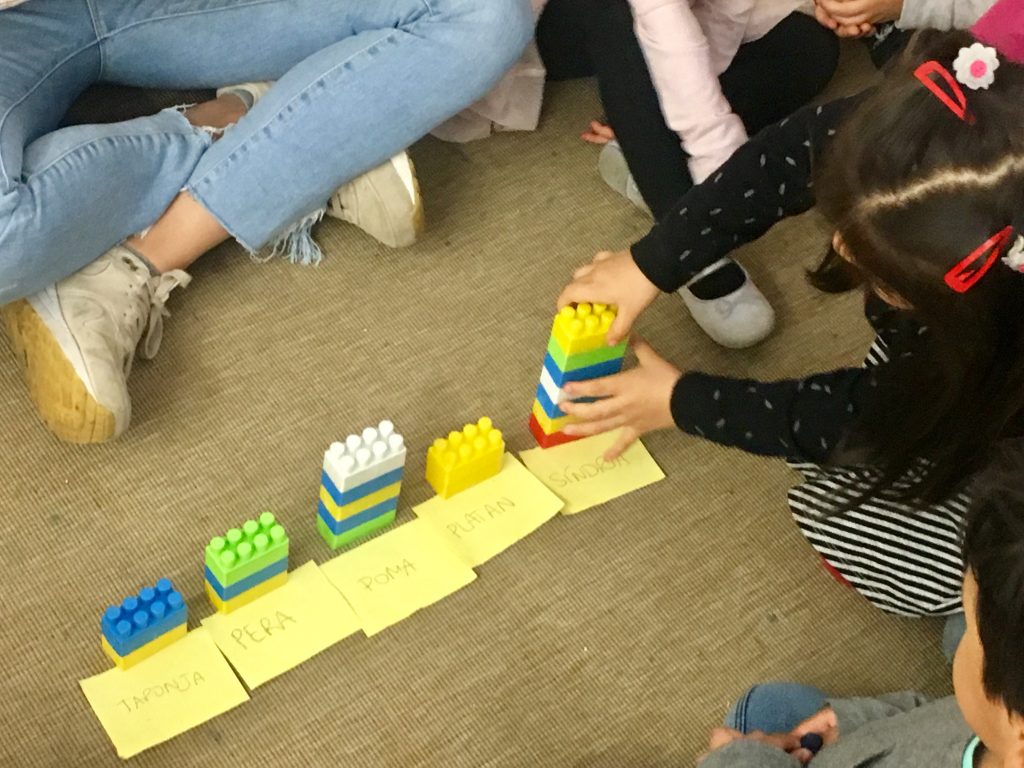 “Les fruites” (P3) ens endinsem en el projecte del nom de la nostra classe i volem saber quina és la fruita que més agrada a les nenes i nens de P3. Per això, hem fet parlat sobre les fruites que coneixem i realitzem un gràfic de barres amb peces de lego entre tots, per donar resposta a la nostra pregunta i per experimentar i aproximar-nos al meravellós món de les matemàtiques.