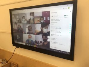 Gran assemblea virtual entre els quatre grups de la comunitat de grans. Primer, hem utilitzat el xat per demanar torn de paraula i escriure propostes. Més tard, hem obert els micròfons perquè els participants poguessin argumentar el grapat de bones idees que han anat sortint.