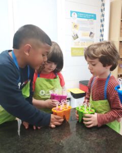 Seguim experimentant per aconseguir el nostre repte! Hem aconseguit fer gelats amb gust i color, amb una recepta ben saludable amb fruites!
