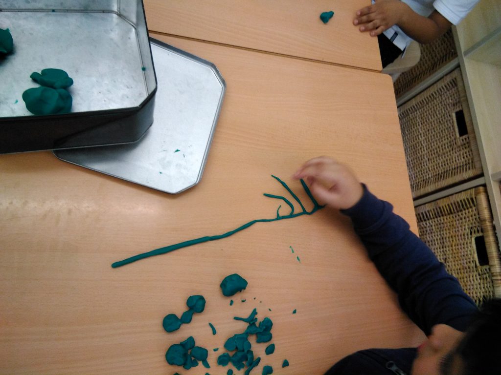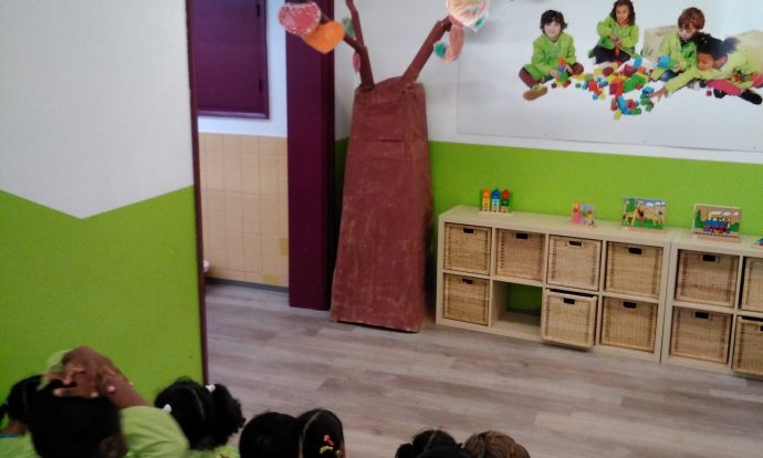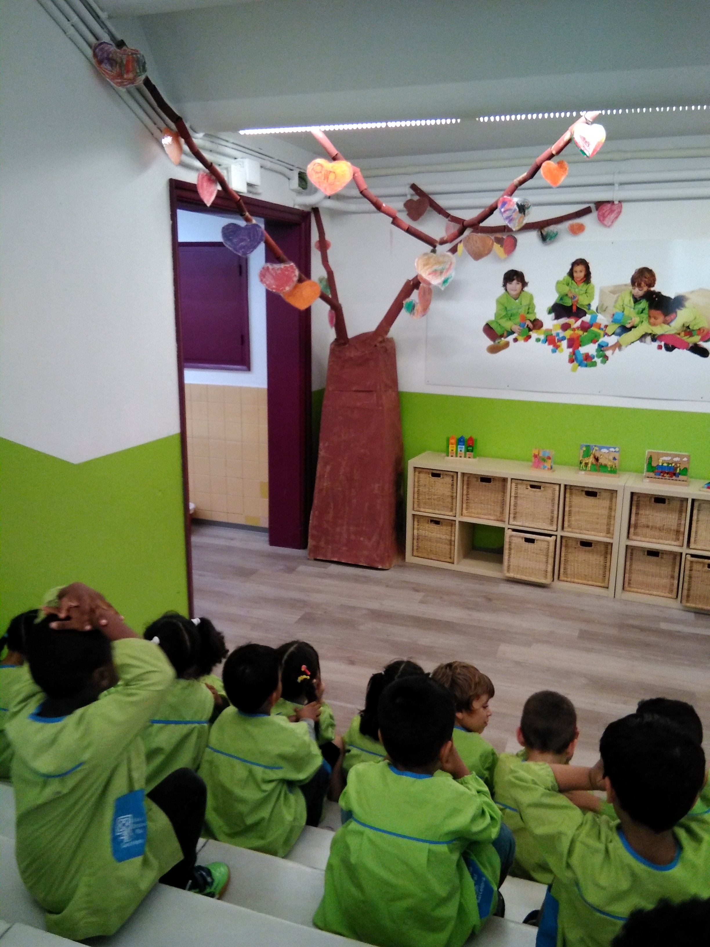 Avui, que ja el teniem acabat, l’hem observat una estona i hem fet noves propostes: “Els arbres de veritat tenen més branques. En podríem fer més”; “A mi m’agradaria posar-hi fulles de veritat també!”; ” A les branques dels arbres hi ha ocells”. Així doncs, seguirem treballant per millorar el nostre arbre!