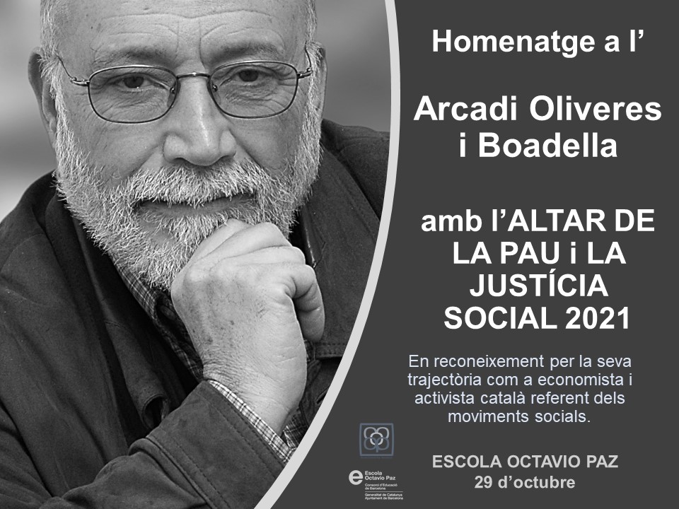 L’Arcadi Oliveres i el seu llegat activista en diferents moviments socials serà homenatjat divendres 29/10 amb l’ALTAR DE LA PAU I LA JUSTÍCIA SOCIAL 2021 en el marc del projecte CAT-MEX.