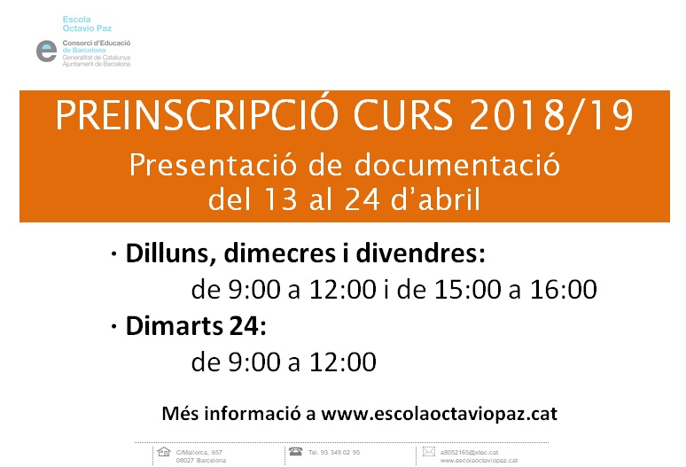 Us informem dels horaris de presentació de les sol·licituds de preinscripció: