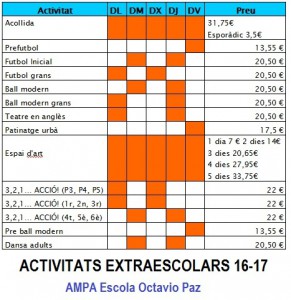 ACTIVITATS EXTRAESCOLARS 16-17