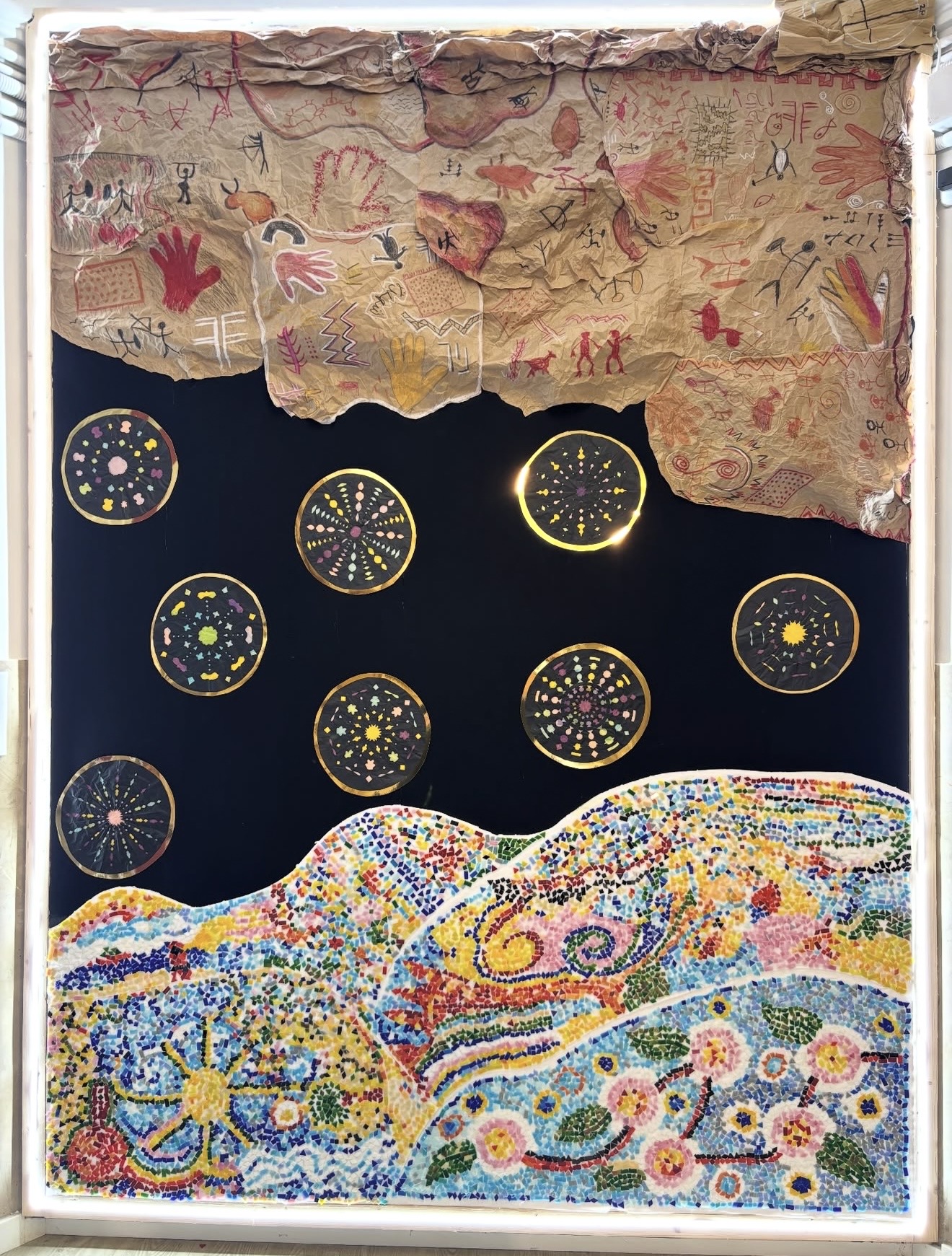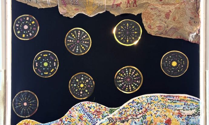 Infants, famílies i equip huma han treballat de valent per confeccionar les instal-lacions “L’art al llarg del temps” ¡ “L’OP recorda”. Les instal-lacions col-laboratives de la comunitat de l’OP al voltant del projecte TEMPS.