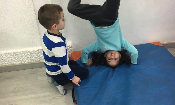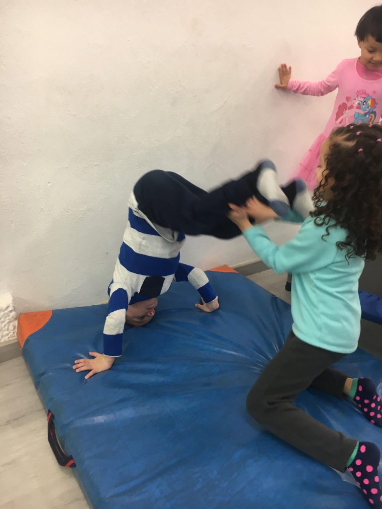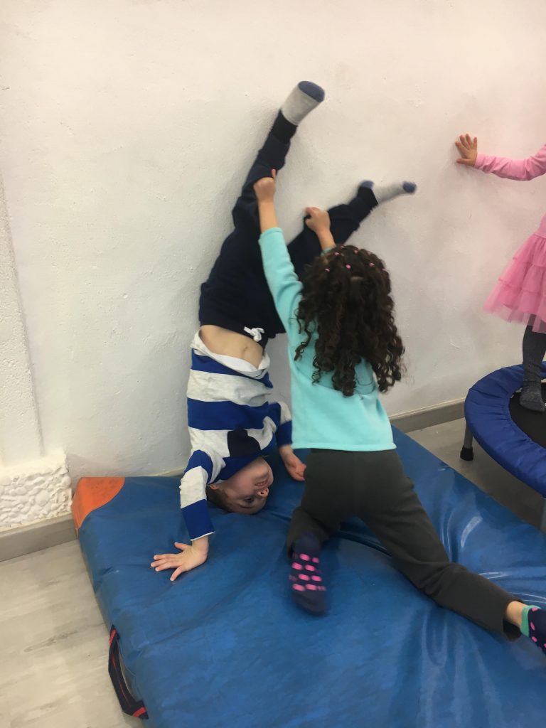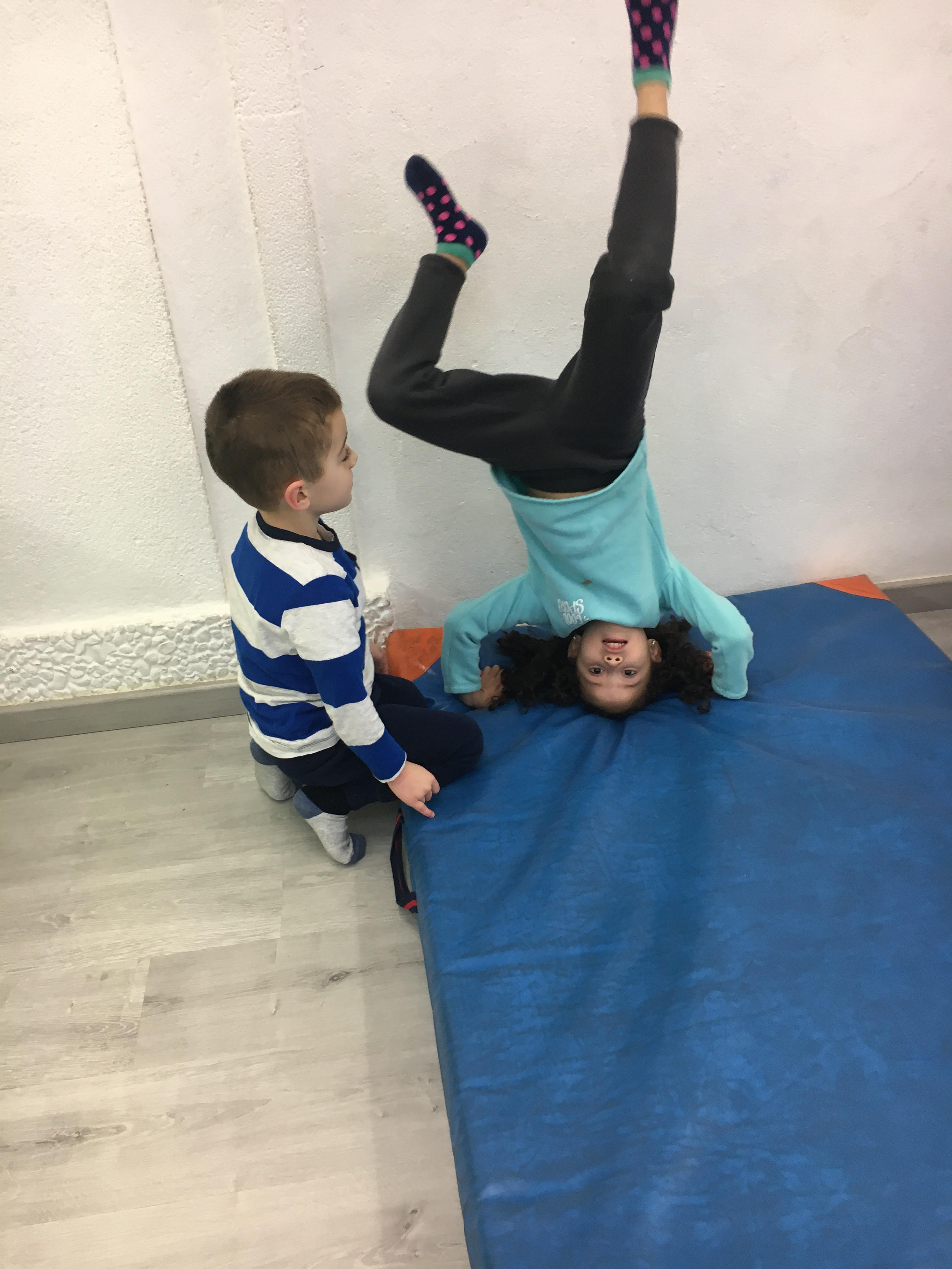 A l’ambient “ens emocionem” va sorgir un nou repte, la Camila va voler ensenyar-nos com feia el pi (una vertical invertida) i això va provocar que d’altres infants volguessin intentar-ho, i sobretot, va generar cooperació i treball en equip. Entre uns i altres ens vam ajudar i vam aconseguir-ho!