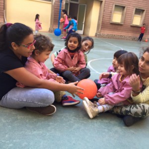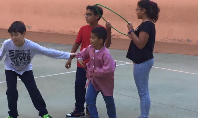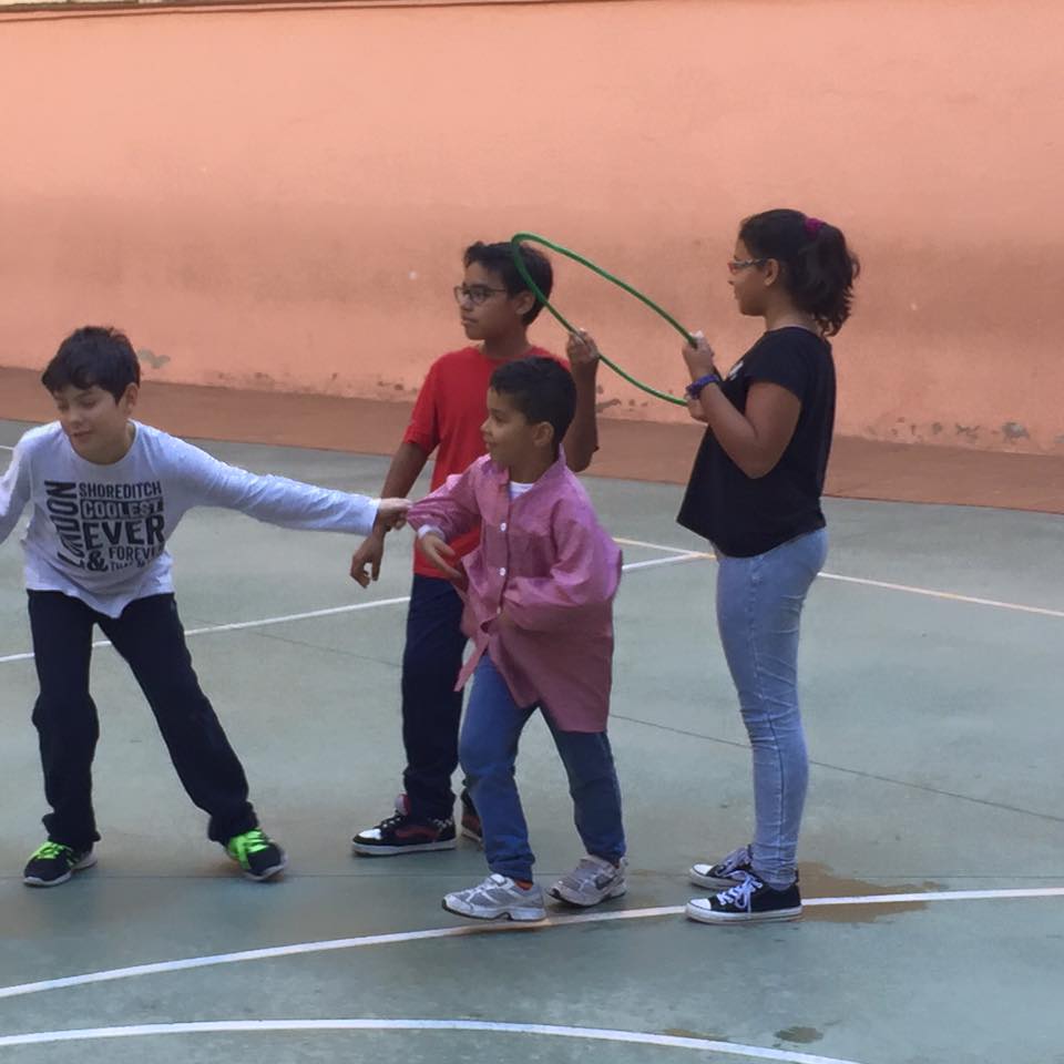 Els més grans de l’escola ensenyen jocs mexicans al més petits: ” 1,2,3 calabaza, el enredadero, conejos a sus madrigueras, gorditas al horno,…”