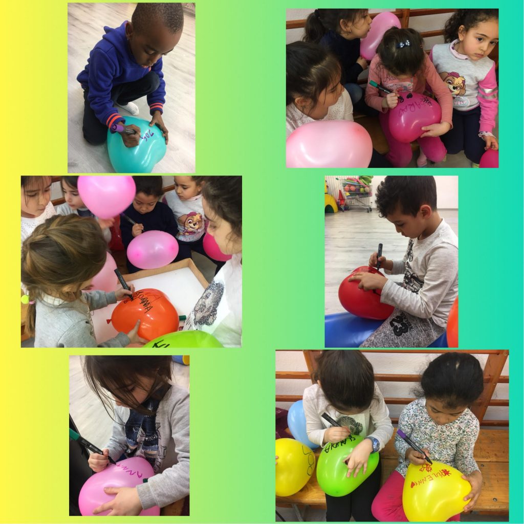 Finalment hem fet joc lliure amb els globus, hem escrit en nom al nostre globus i fins i tot alguns l’hem decorat. Ens ho hem passat molt bé!