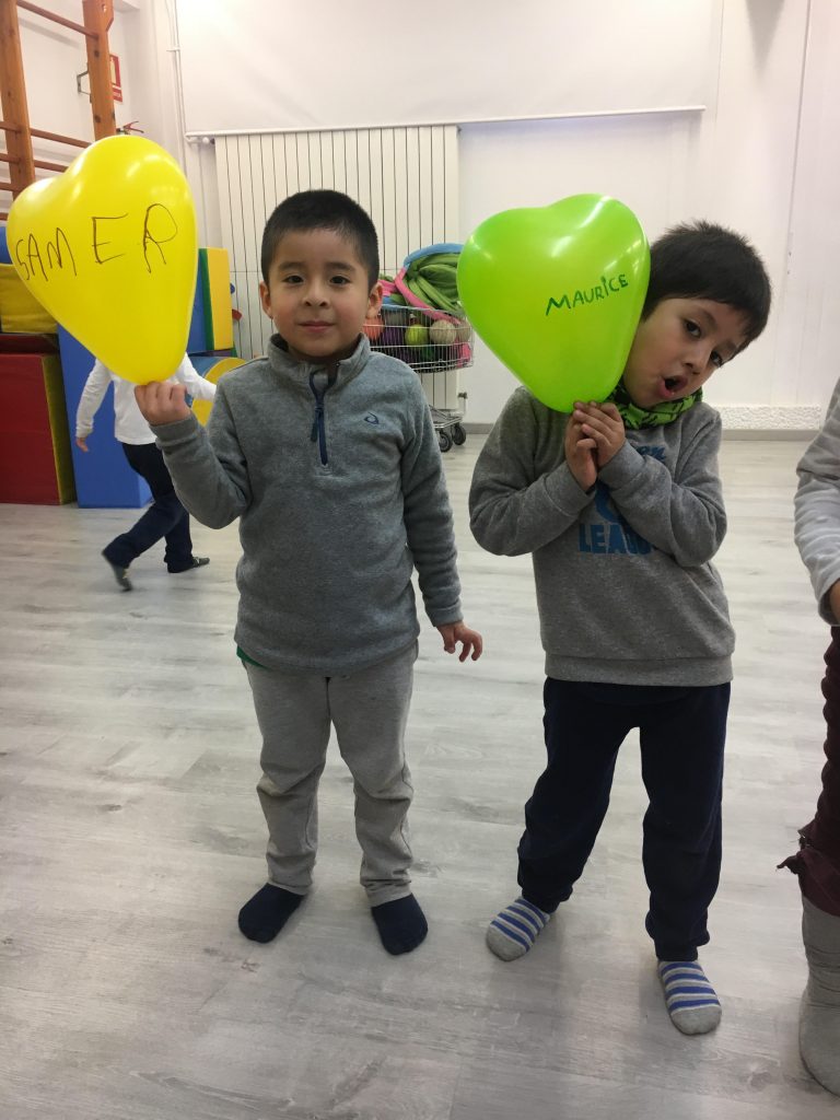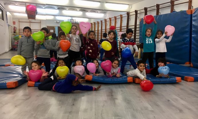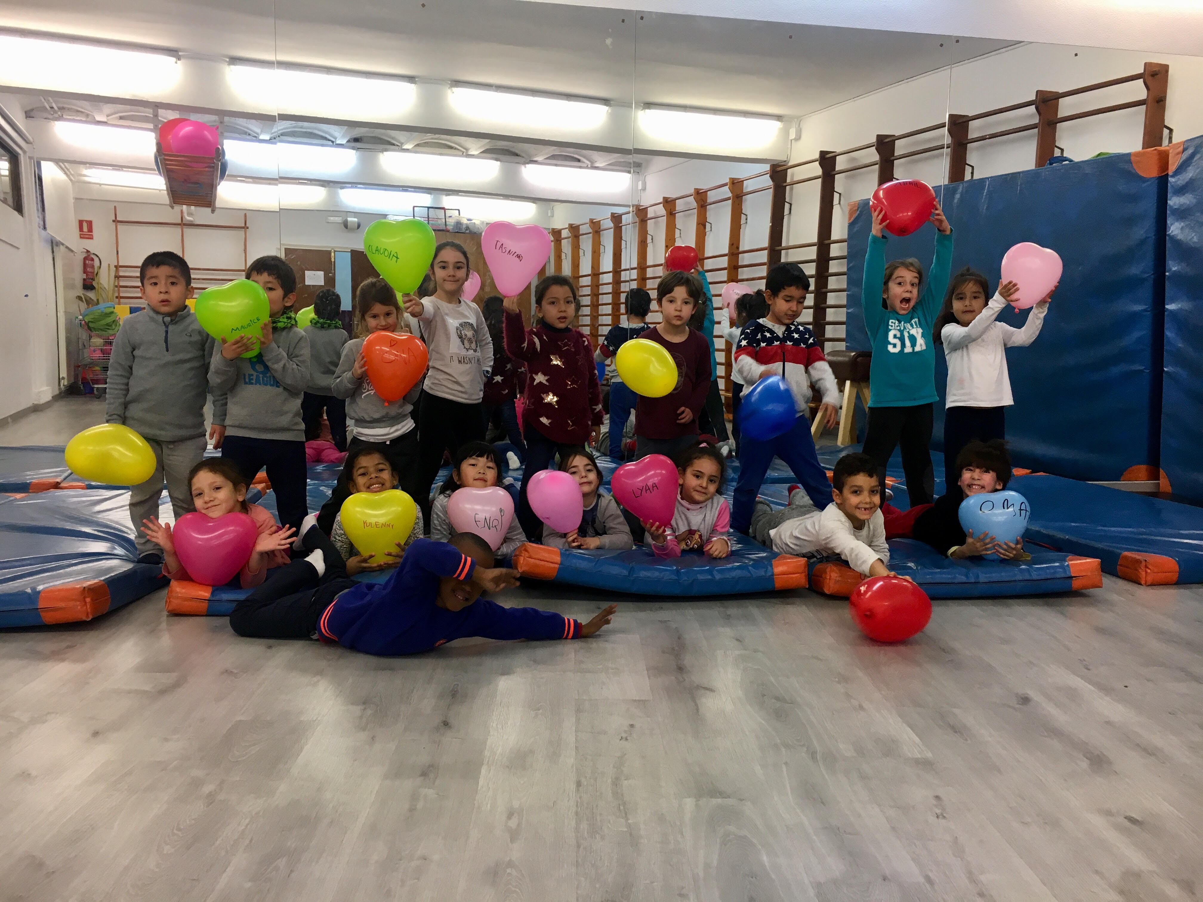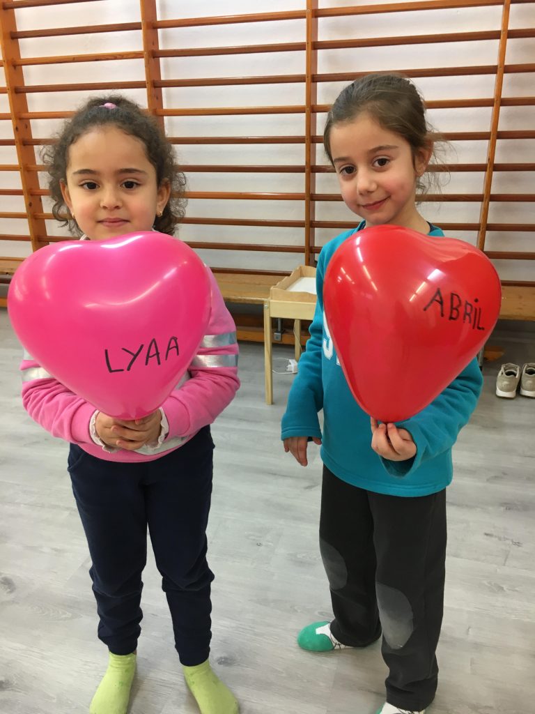 Avui els infants de P5 hem experimentat amb globus en forma de cor a psicomotricitat: