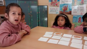 Els nens i les nenes de P4 juguem a buscar parelles de fruites