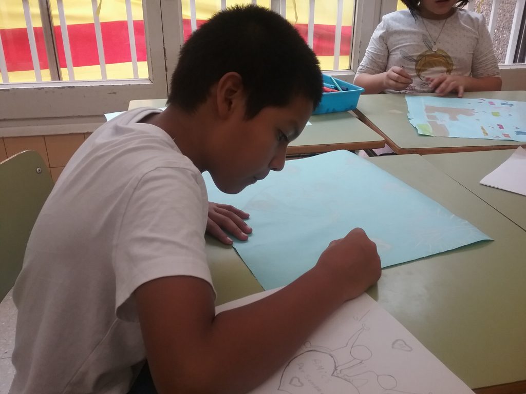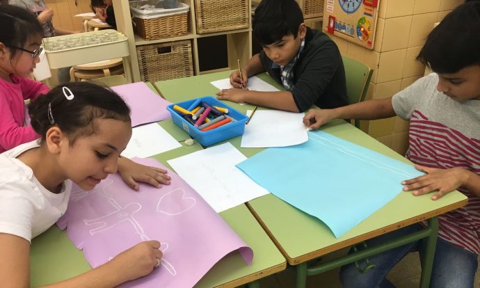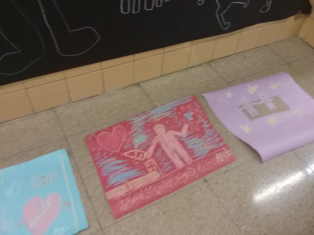 Els alumnes de quart inspirant-se amb l’artista nord-americà realitzen les seves obres amb guix i retoladors.