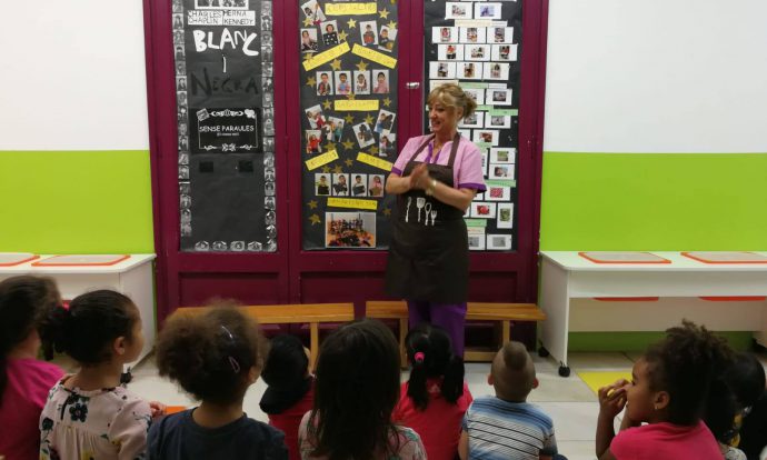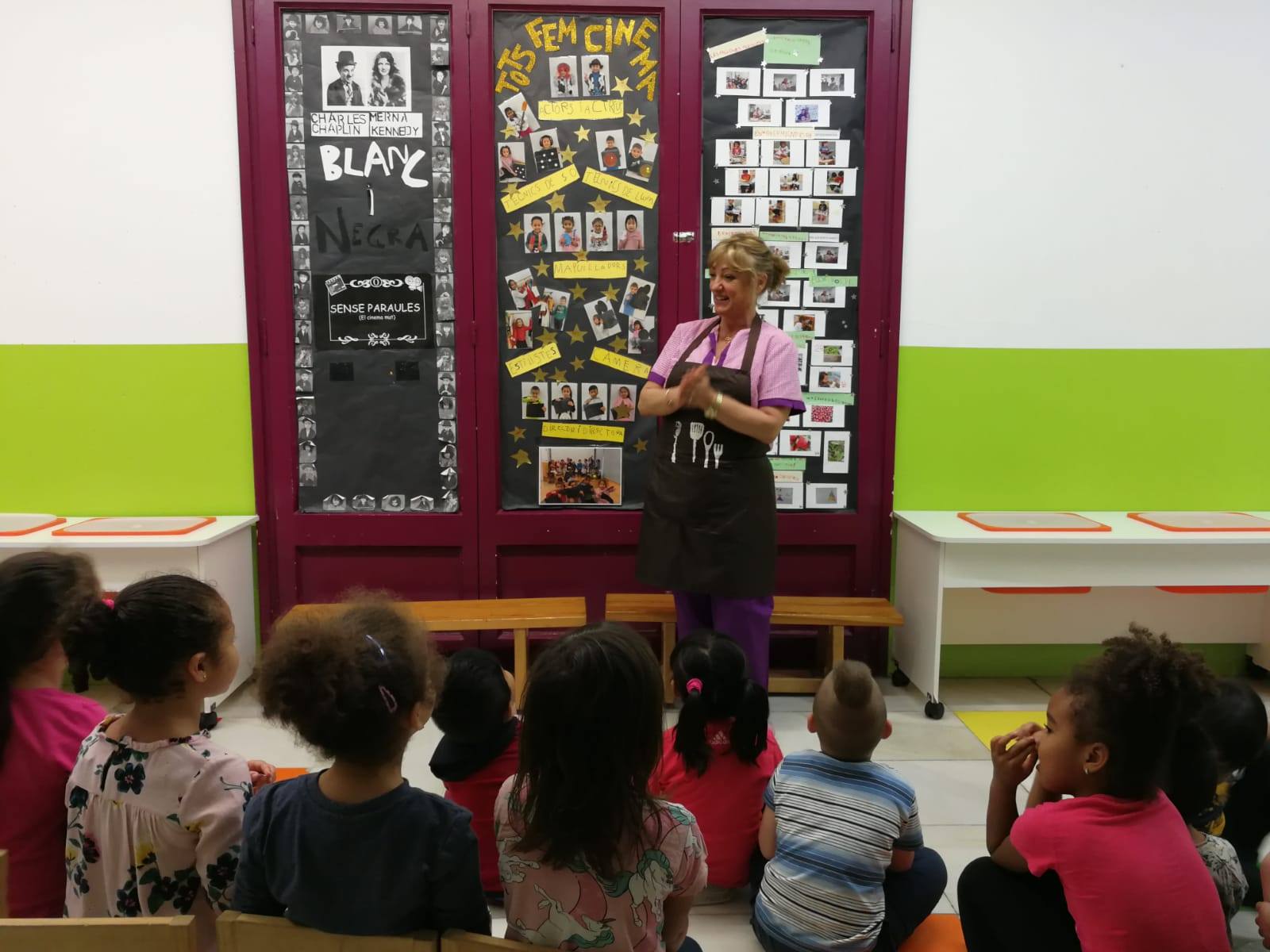 Avui la classe de les papallones hem donat per finalitzat el projecte de cinema, penjant el pòster amb les fotos de la pel.lícula (documental) que hem fet sobre la nostra estimada cuinera de l’escola, la Regina.