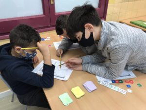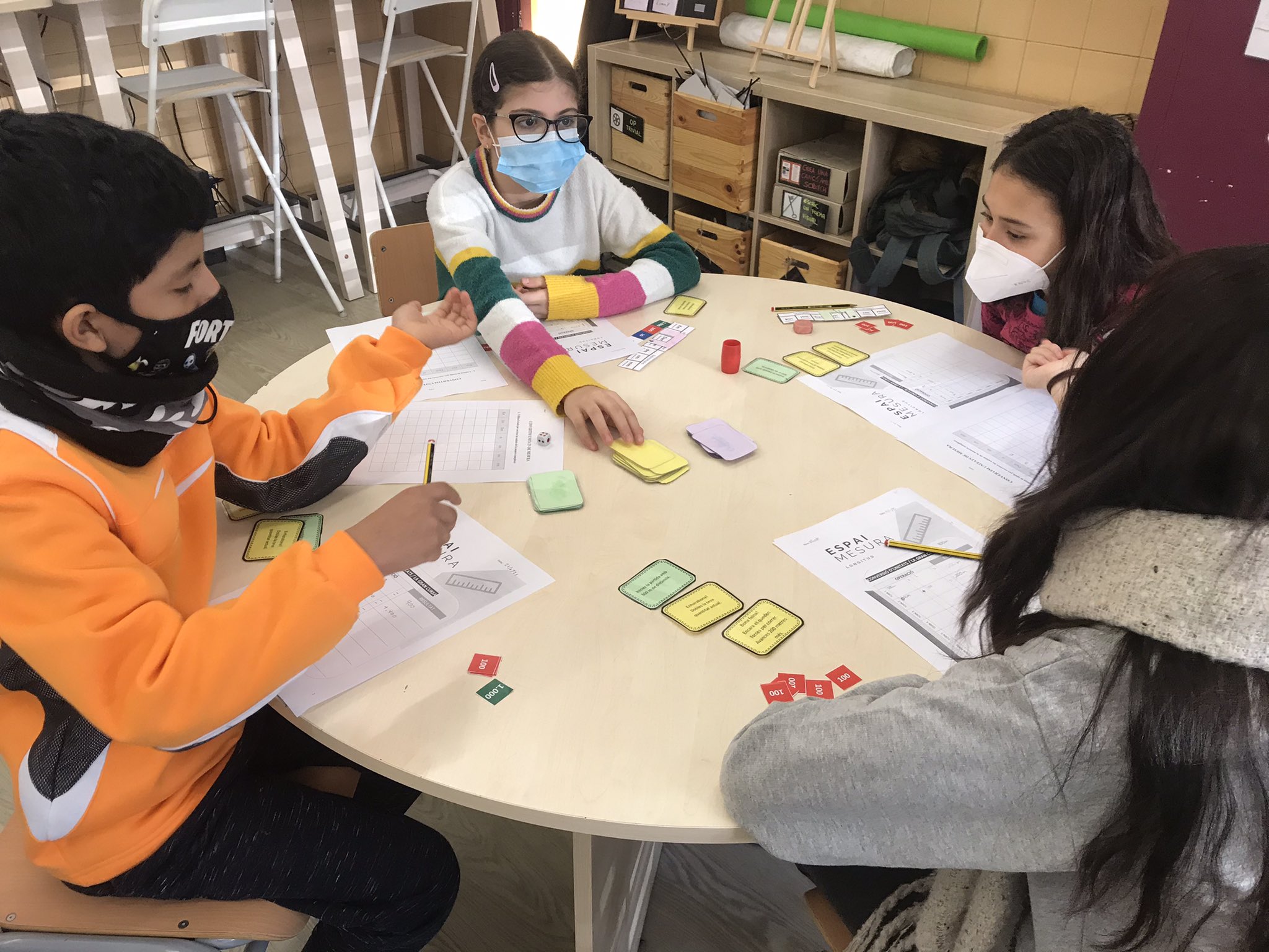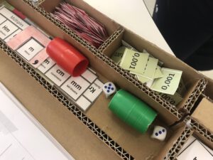 A l’espai de mesura treballem la comprensió dels canvis d’unitats del sistema mètric decimal amb el joc “La gran cursa”.