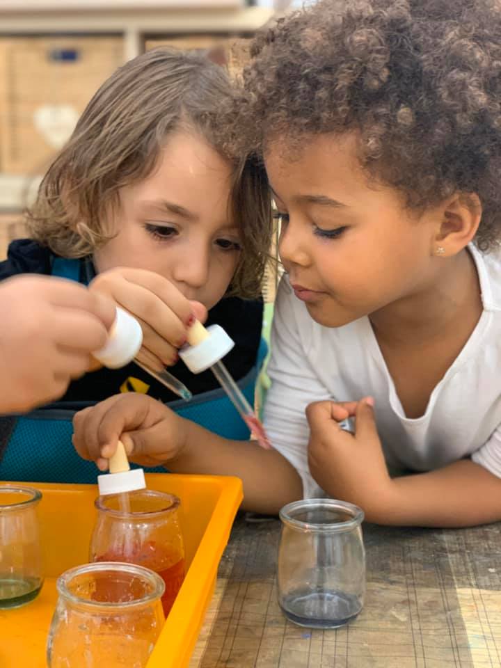 A l’ambient experimentem aquesta setmana experimentem amb els colors primaris mitjançant la teoria dels colors. A partir dels colors primaris fem nous colors barrejant uns amb altres i utilitzem els comptagotes per anar canviant les tonalitats de mica en mica. Mireu que bé ens ho passem fent màgia per convertir uns colors ens uns altres!