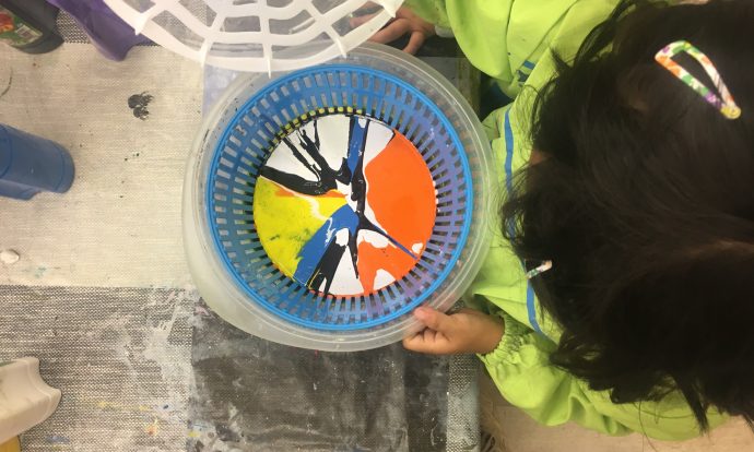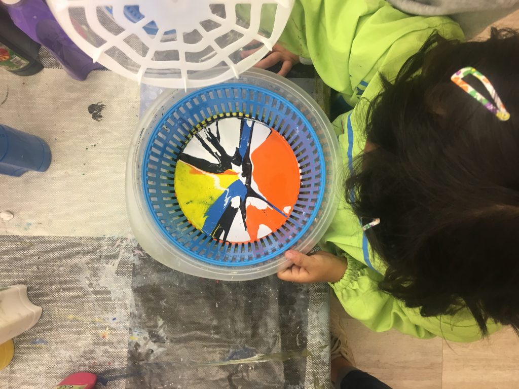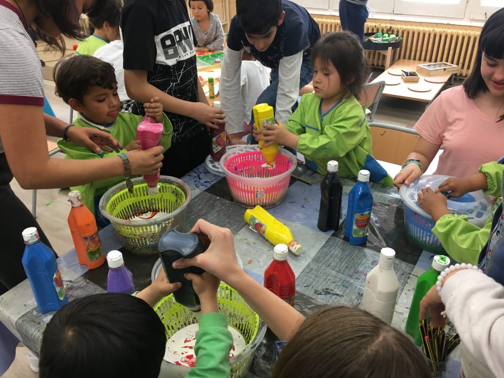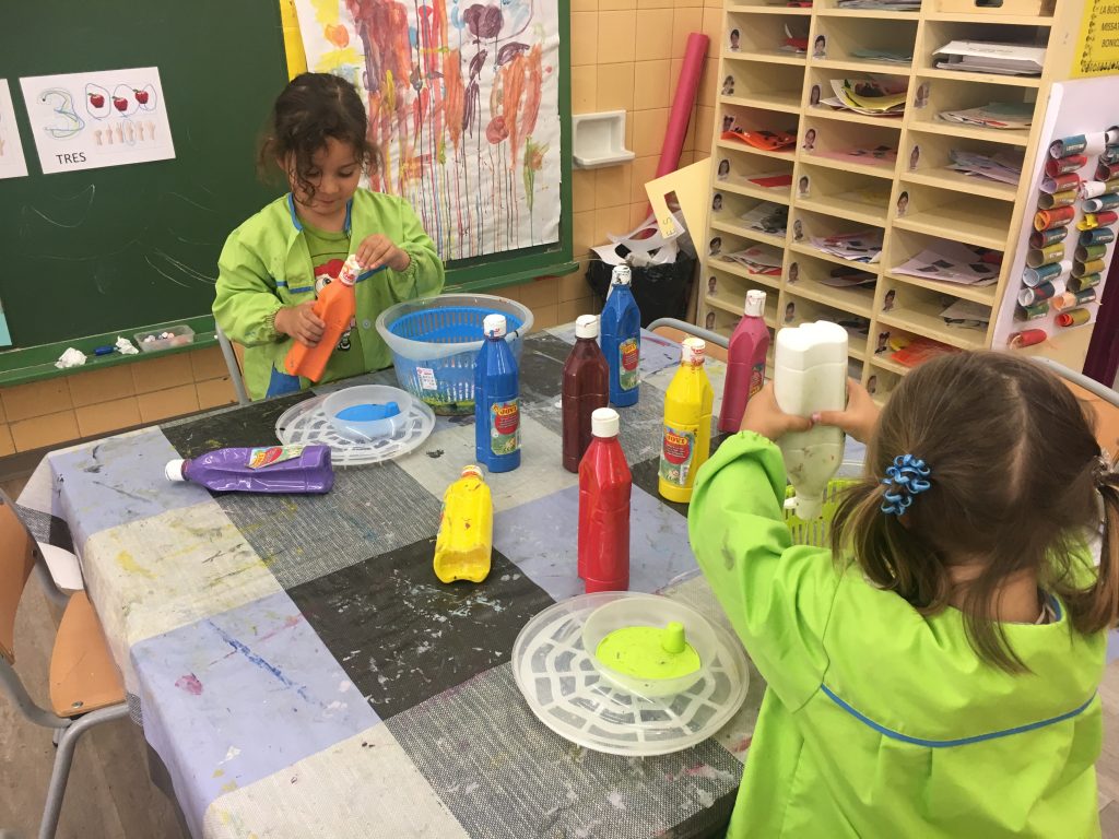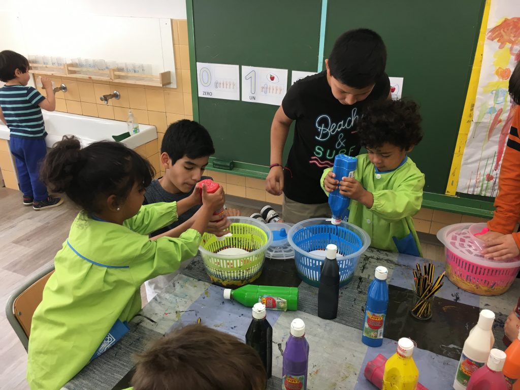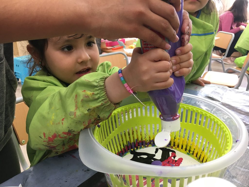 Els infants de P3 hem pogut gaudir d’uns ajudats excepcionals, els de 6è han vingut a fer-nos un cop de mà per experimentar amb la pintura i els centrifugadors d’enciam. Com que aquesta paraula era una mica difícil de recordar, hem decidit dir-li la màquina màgica de la pintura! El resultat ha estat unes creacions molt artístiques i acolorides. Gràcies nois i noies de 6è per la vostra ajuda!