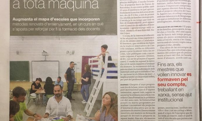 M’emociona llegir l’article d’innovació educativa que el Periódico de Catalunya dedica avui a la nostra escola.