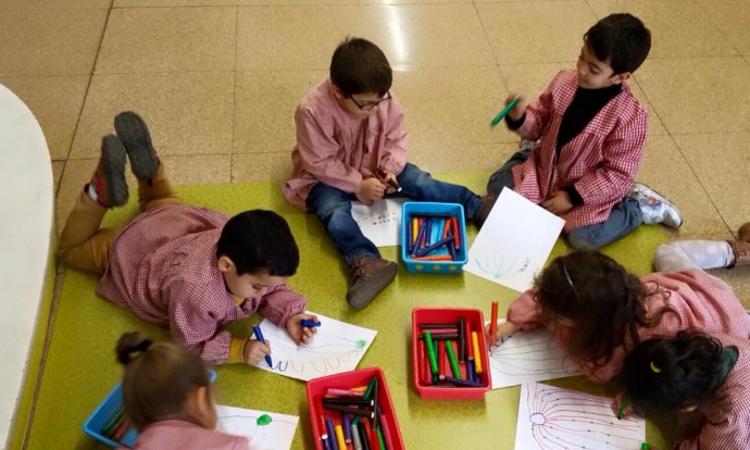 Els de P4 pintem la pluja de colors que els nens i nenes de l’escola estem fent per decorar l’escala.
