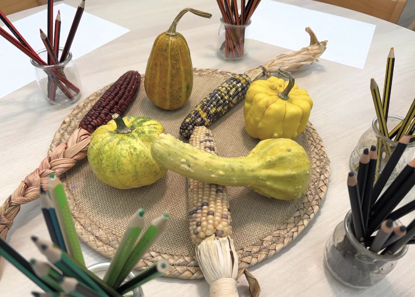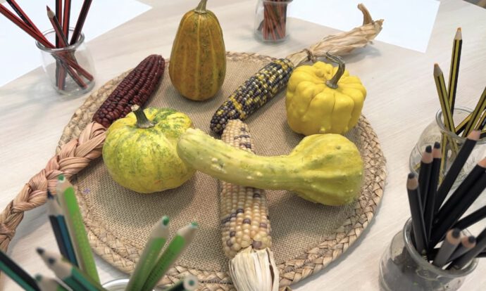 La tardor ha arribat a l’ambient som artistes amb el dibuix al natural de carabasses i panotxes de blat de moro.