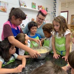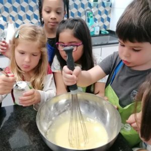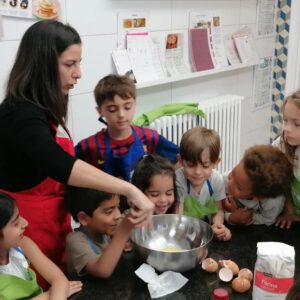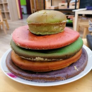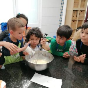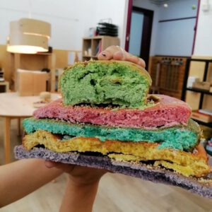 Amb una mirada globalitzada treballem el projecte de recerca. És per això que hem cuinat 5 deliciosos pa de pessics de diferents colors per representar les 5 capes de l’atmosfera.