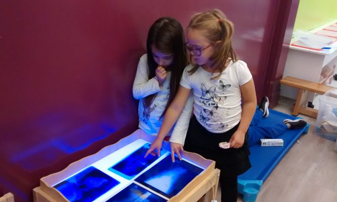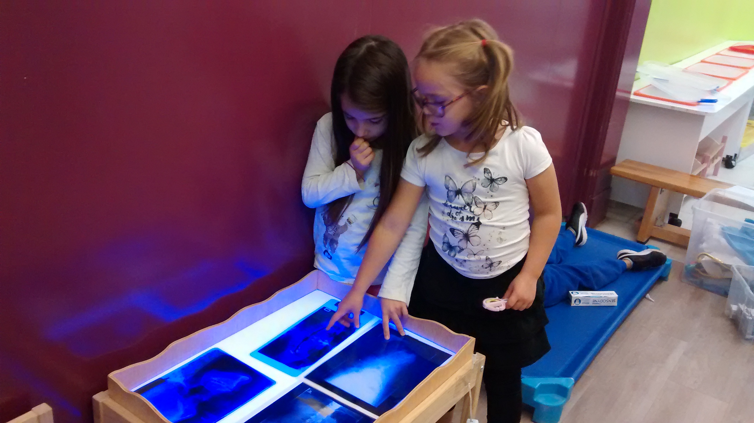 A l’ambient ARA SOM observem l’esquelet amb l’ajuda de les radiografies i la taula de llum.