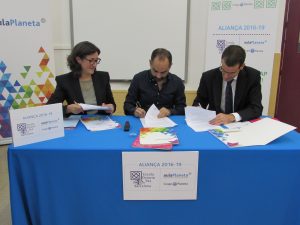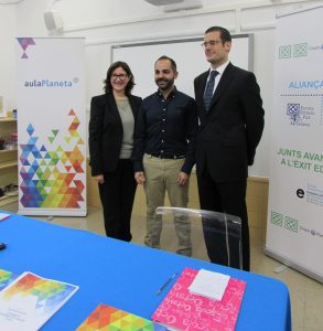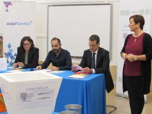 La signatura de l’Aliança ha anat a càrrec del Sr. Pablo Lara, director general d’Educació del Grupo Planeta; la Sra. Mercè Massa, gerent del Consorci d’Educació de Barcelona i el director de l’escola Xavier López, acompanyats de representants de la nostra Comunitat Educativa i de les dues institucions.