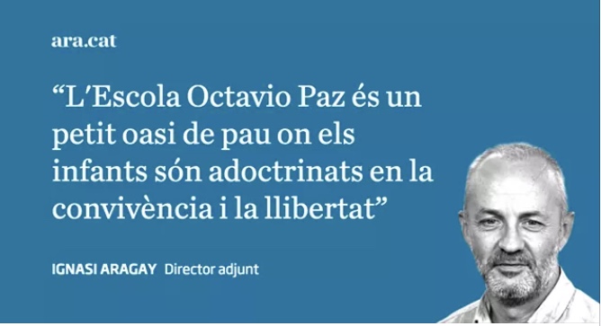 Avui, l’escola Octavio Paz al diari Ara! L’Ignasi Aragall escriu un emotiu article. Quin reconeixement més maco! Moltes mercès per les teves paraules, Ignasi!