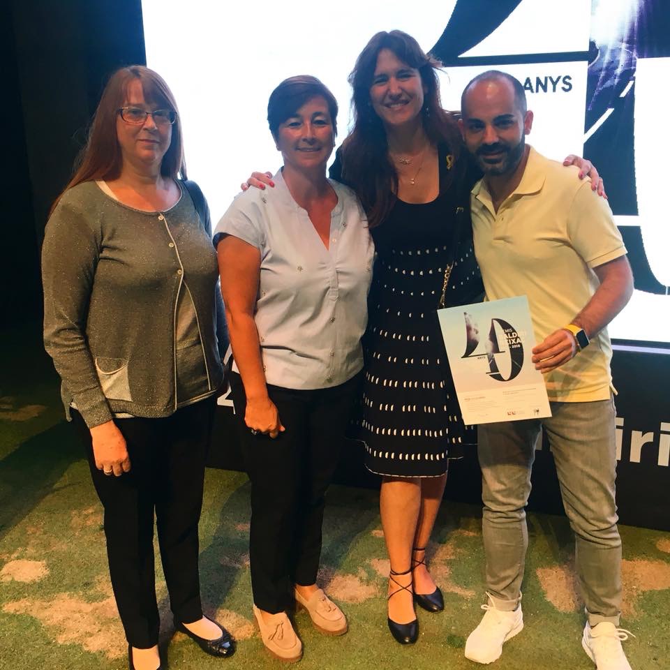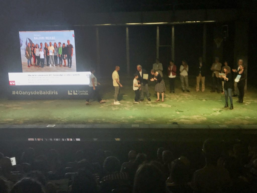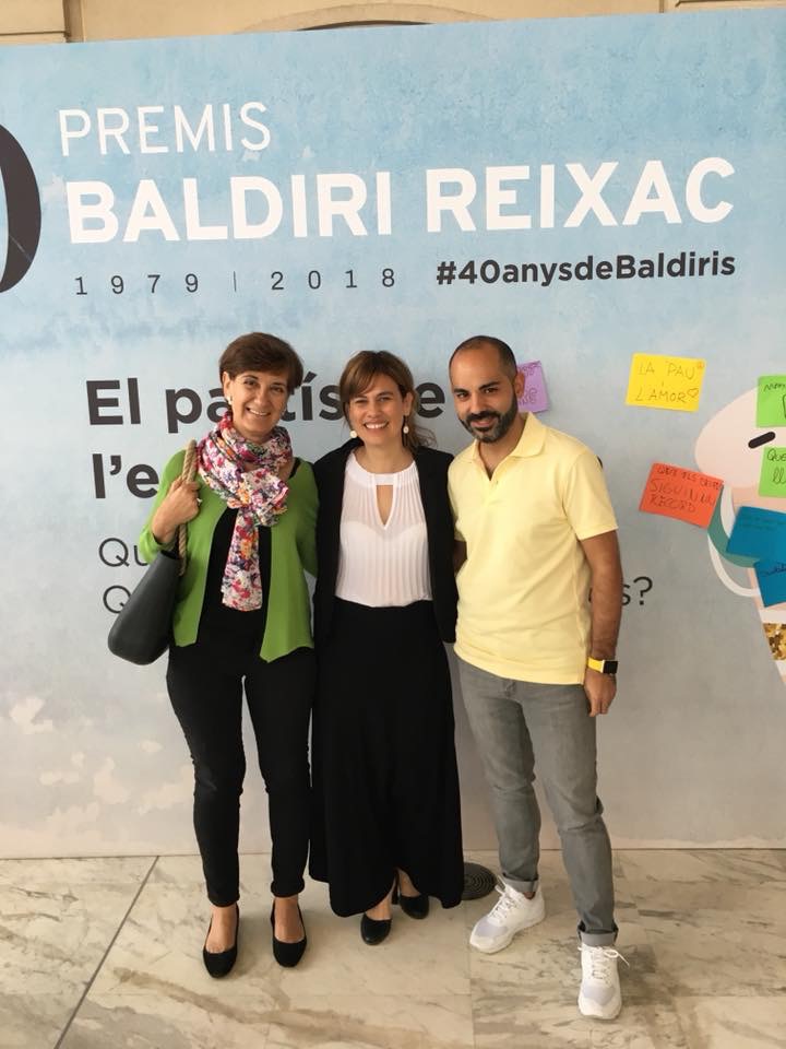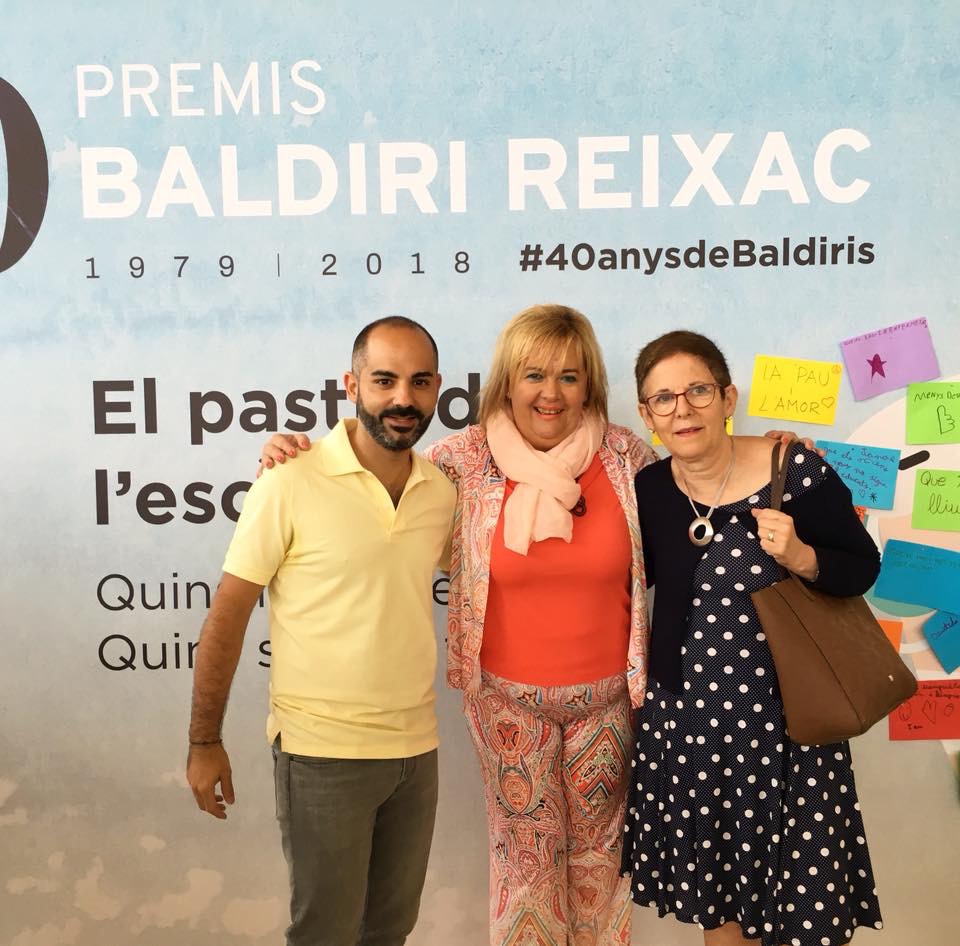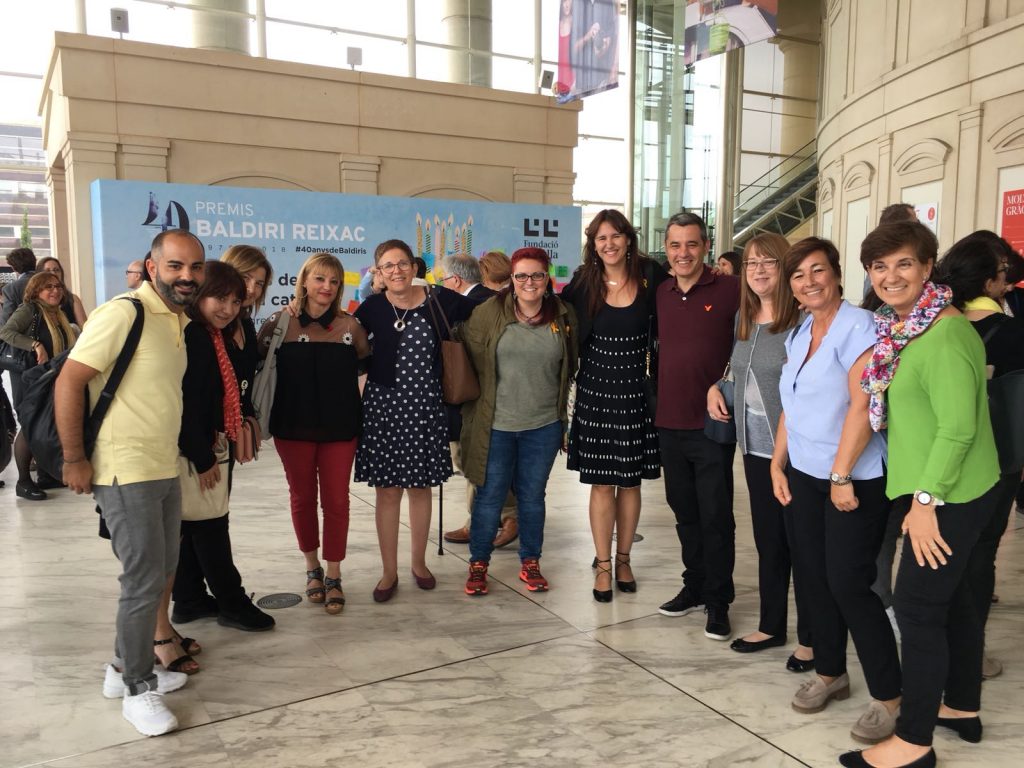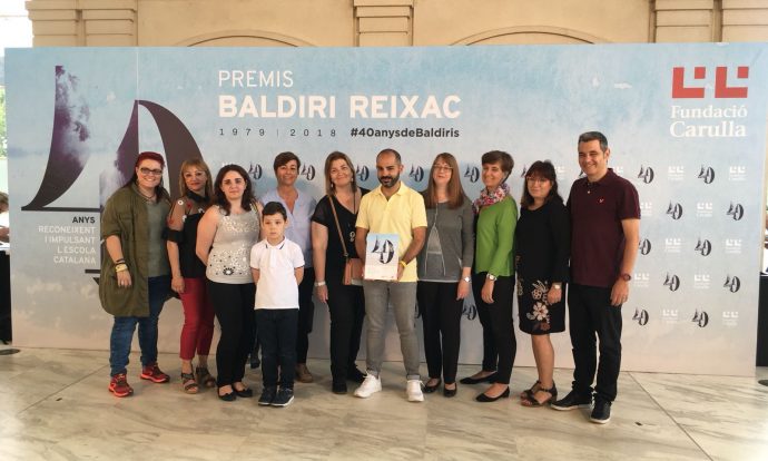 Representants de tota la comunitat educativa acompanyats per la coordinadora territorial del Consorci d’Educació de Barcelona hem rebut de mans de la Fundació Carulla el guardó Premi Baldiri Reixac 2018 per l’Altar de la Comunicació: Homenatge a Carles Capdevila.