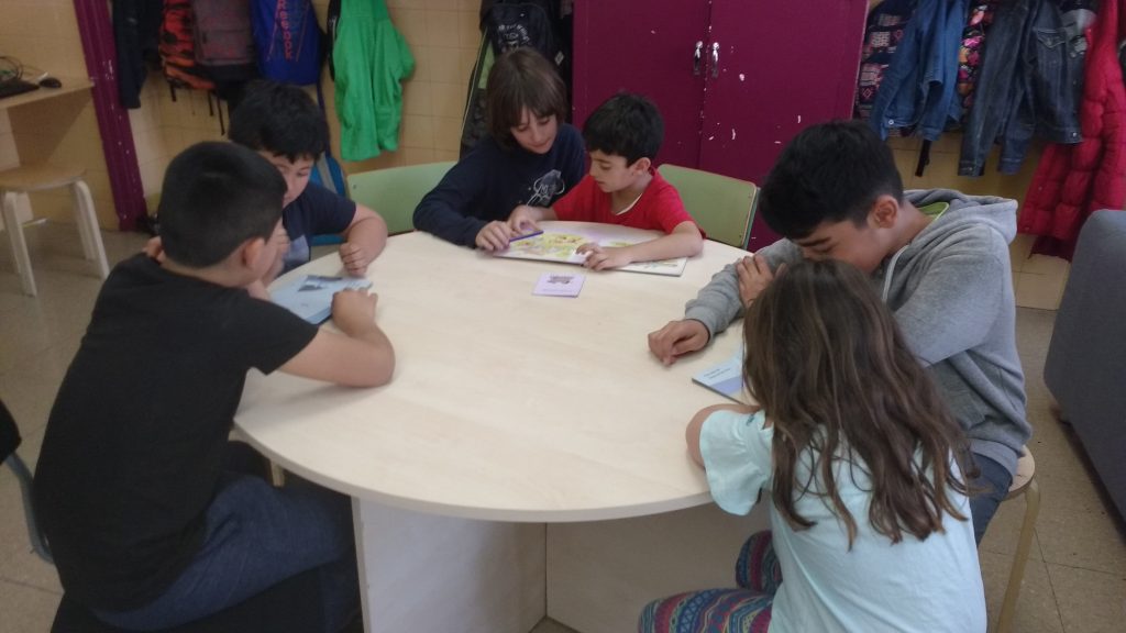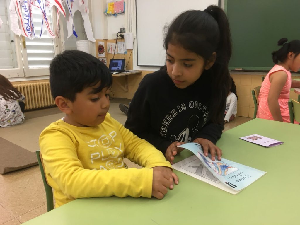 Els padrins (6è) i els fillols (1r) gaudim conjuntament del plaer de la lectura.