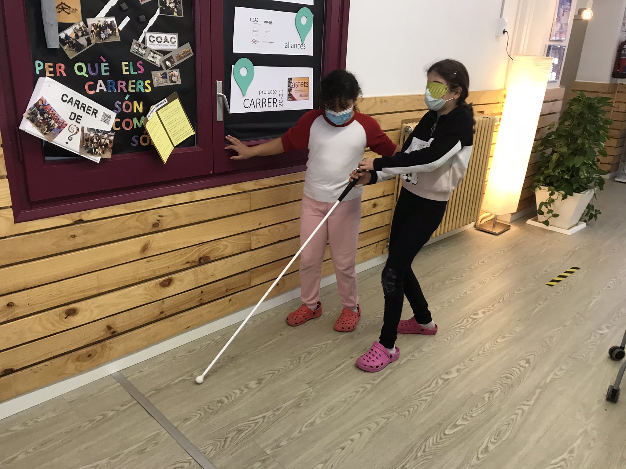 Avui, potenciem la nostra percepció tàctil i auditiva per posar-nos en la pell d’una persona invident i sensibilitzar-nos sobre els obstacles i dificultats a les que s’enfronta en el dia a dia. #projecteCARRER