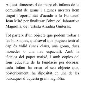 Aquest dimecres la Comunitat de Grans hem acudit a la @fundaciomiro per participar d’una activitat molt especial! @ariadnaguiteras