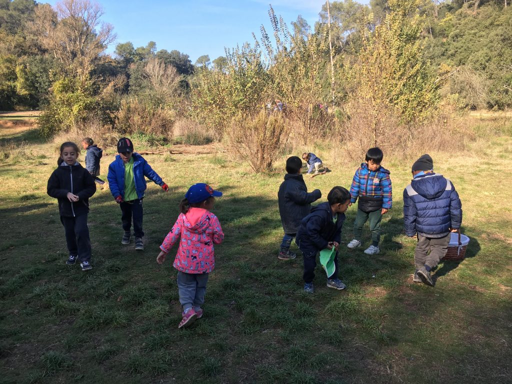 Hem arribat a Can Coll, i un cop tots estàvem amb l’energia carregada després de l’esmorzar, ens hem endinsat al bosc en diferents grups i hem fet una bona passejada, on hem pogut trobar fulles, glans, pinyes, palets i fins i tot hem creuat un riu per un pont, hem escalat i hem trobat unes cabanes molt misterioses! Un cop hem recollit tot el material que hem cregut necessari, hem fet uns mandales amb els materials que hem trobat a la natura i ens han quedat fantàstics! Després de dinar tots junts i tornar a carregar les piles, tot i estar molt cansats, hem seguit jugant una miqueta envoltats de la natura.