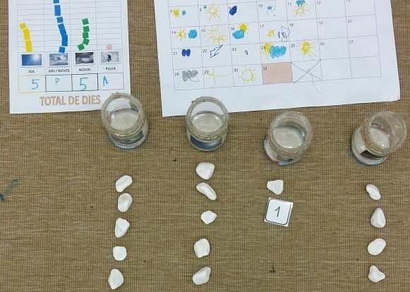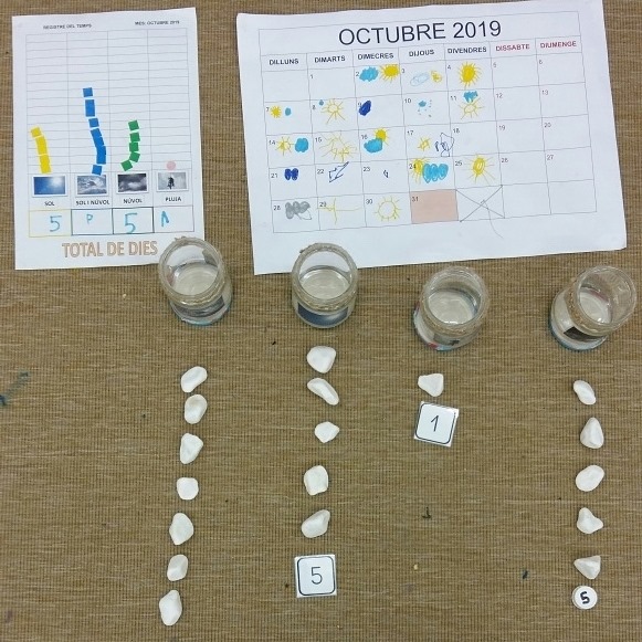 Els infants de la classe de la Lluna a través de les rutines del temps, fan estadística, practiquen el comptatge, el grafisme, el reconeixement de les grafies numèriques, etc.
