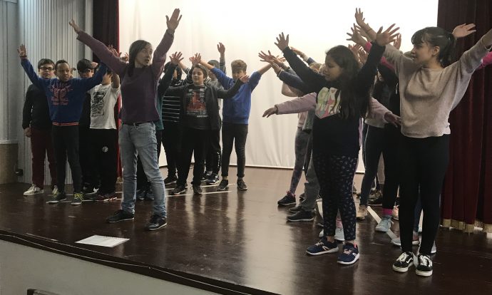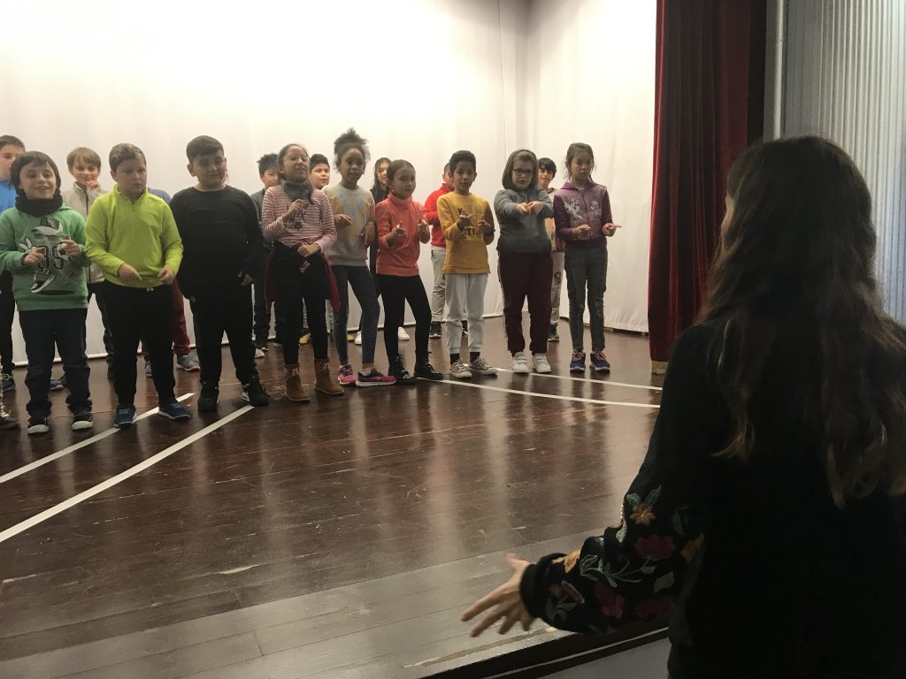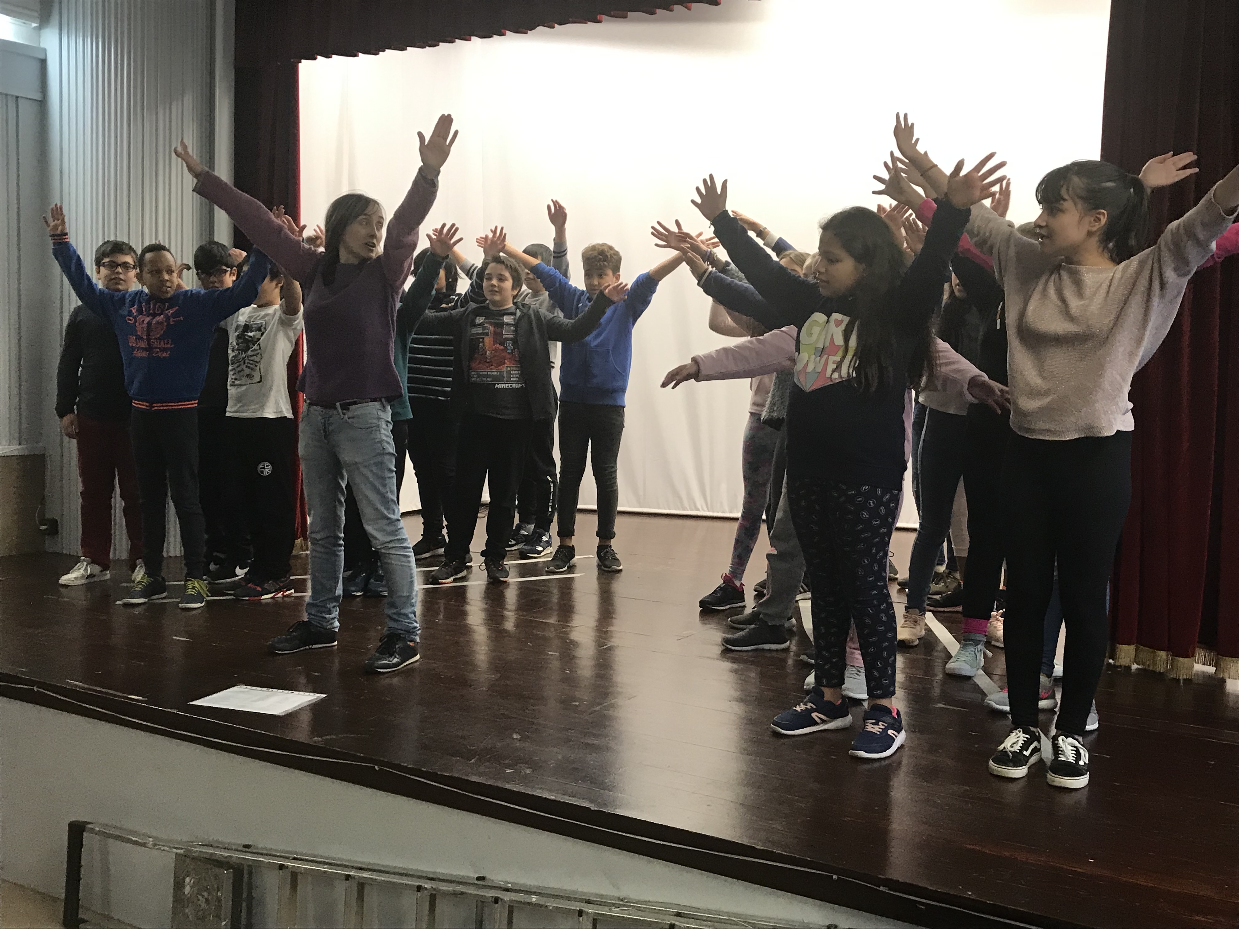 Ja estem escalfant motors per al concert de Nadal. Avui hem baixat al teatre de l’escola per començar a assajar amb la resta de companys d’escola.