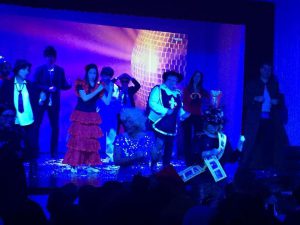 Tots els infants de l’escola s’ho han passat d’allò més bé veient els mestres i el personal de servei a sobre de l’escenari.
