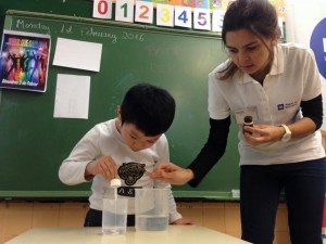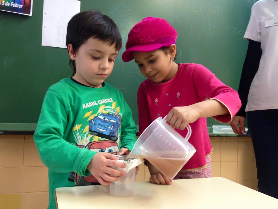 Avui ens ha visitat la Laura, tècnica d’Aigües de Barcelona, per explicar-nos coses molt interessants sobre l’aigua. I al final hem pogut fer un experiment per veure com funcionen les potabilitzadores.