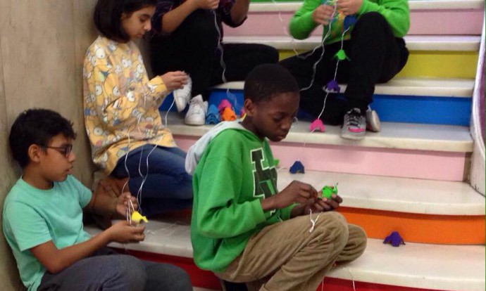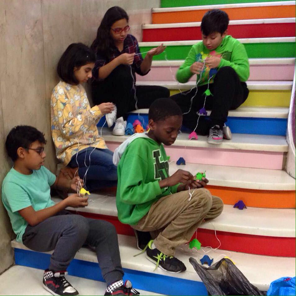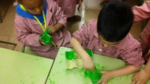 Comença a prendre forma! Tota l’escola s’involucra en la construcció del món de colors que han ideat els nens i nenes de P4 i 1r. Té molt bona pinta. Quedarà genial!