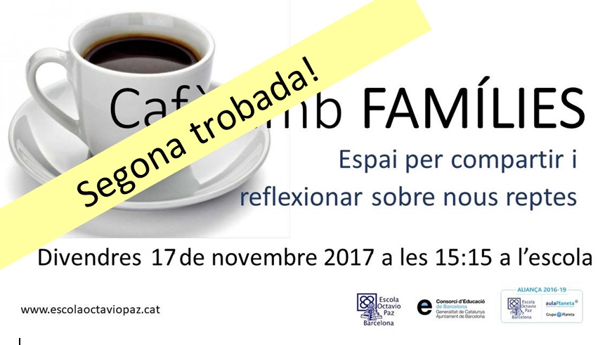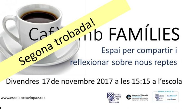 us informem que el proper divendres 17 de novembre a les 15:15 continuarem amb el CAFÈ AMB FAMÍLIES. Us oferim una nova oportunitat per compartir junts una estona de reflexió. Us hi esperem!