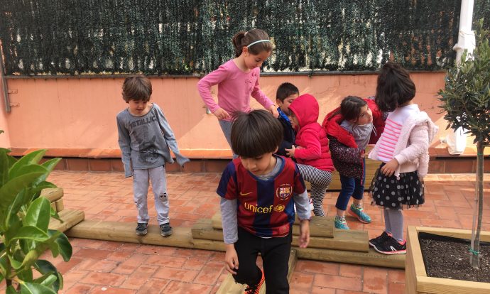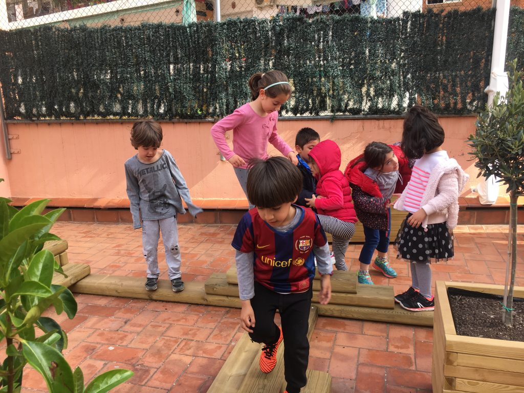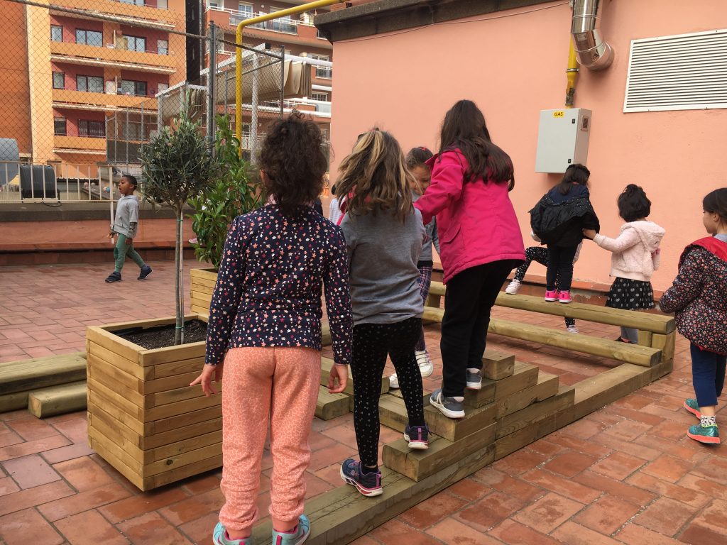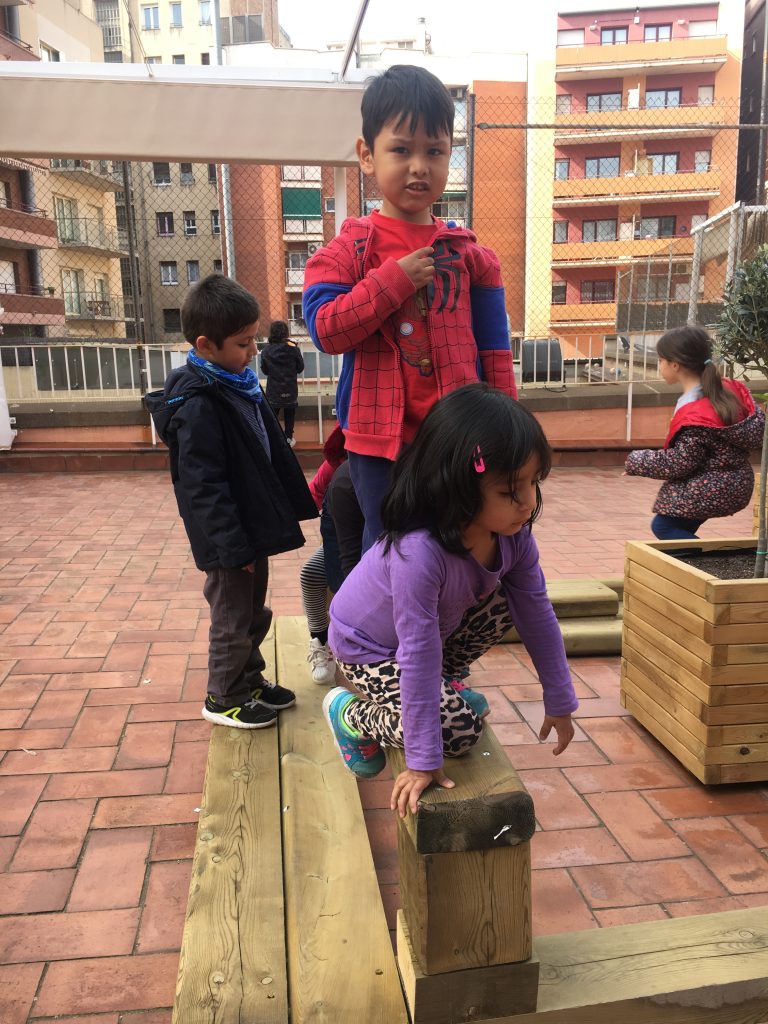 Els infants de la comunitat de petits experimentem amb les noves propostes que trobem al pati. L’estructura de fusta és molt popular i ens ajudem uns amb altres per pujar-hi i baixar. Treballem l’equilibri i la cooperació, passant una estona molt divertida i compartida amb tota la comunitat.