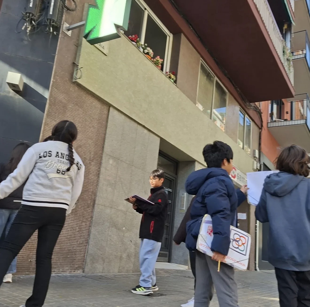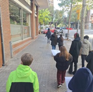 A l’espai de Geometry de 5è i 6è estem observant, descrivint i representant el bloc d’edificis de l’escola, part de l’entramat octogonal del nostre barri. Una proposta que combina geometria, orientació i llengua anglesa per conèixer l’entorn i aprendre a mirar-lo amb ulls matematics.