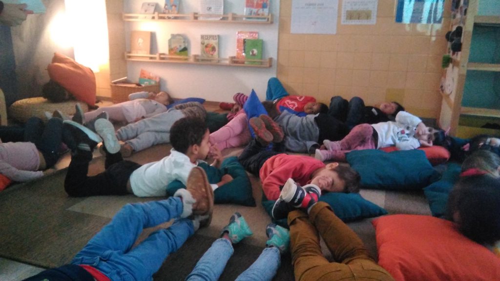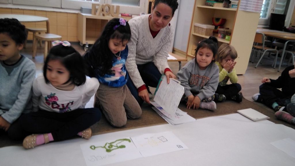 La Fabiana, la mare del Yeray, a través de la fantasia del conte d’en Tomàs ens ha convidat a imaginar i a dibuixar el lloc de casa nostra on ens sentim protegits: dins un armari, sota el llit, amagats baix una manta… Amb la individualitat de cadascú hem creat una gran casa per viure plegats. Hem distribuït els espais, dibuixat passadissos per estar connectats, algú ha pensat que necessitem lavabos i finestres per respirar… però com ens repartirem les tasques? Quins valors fomentarem?