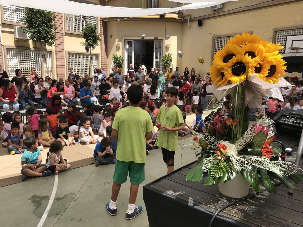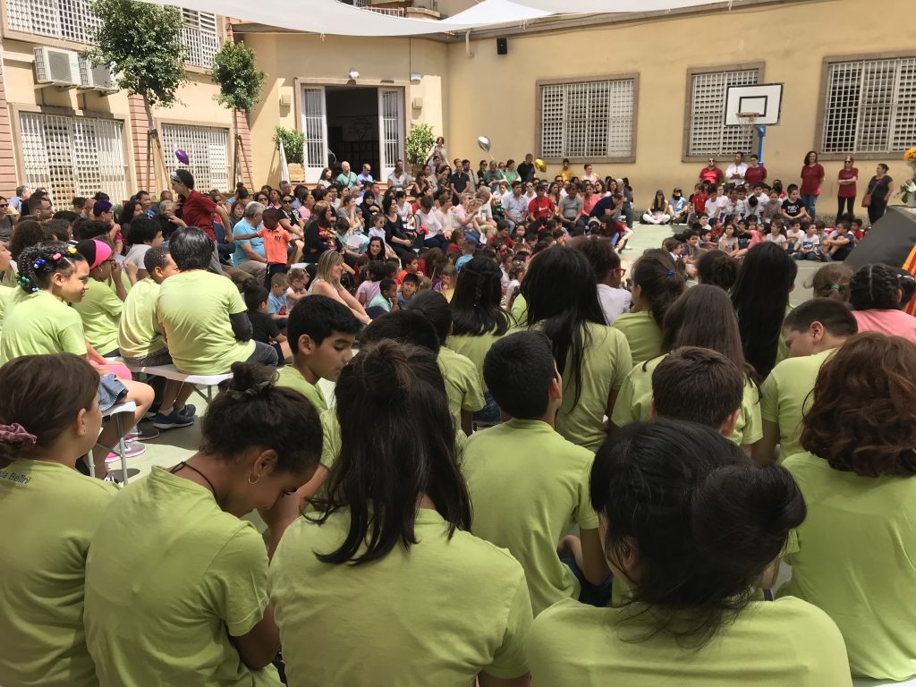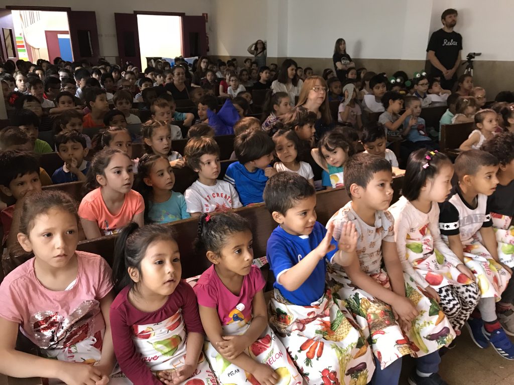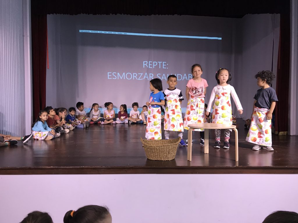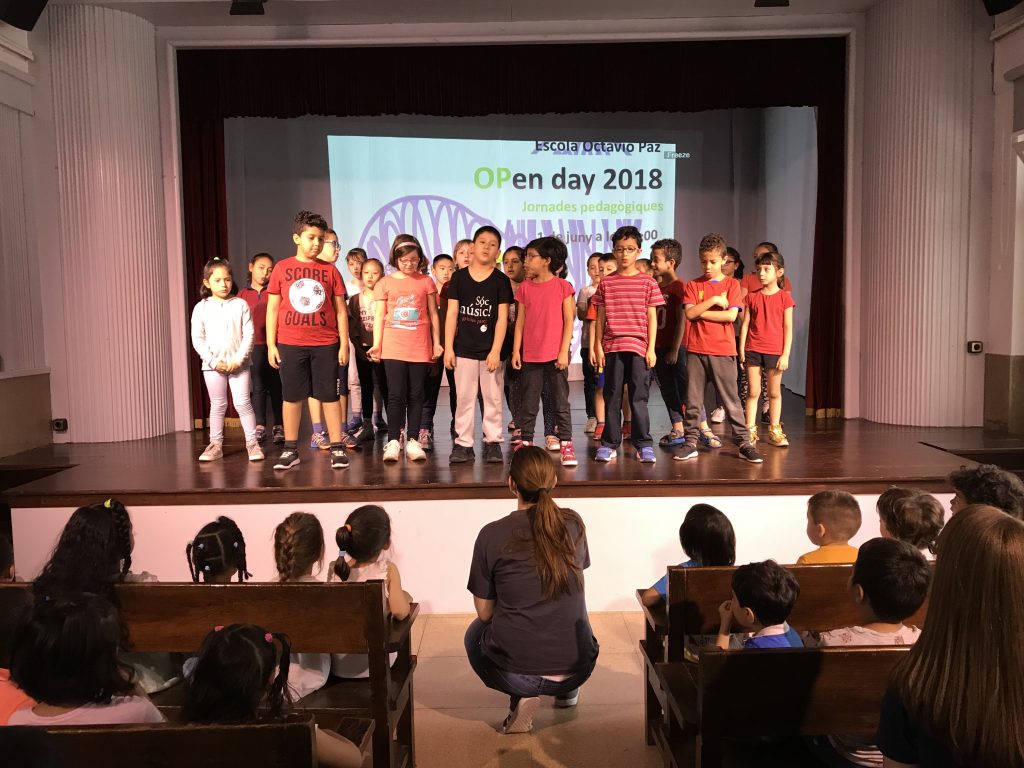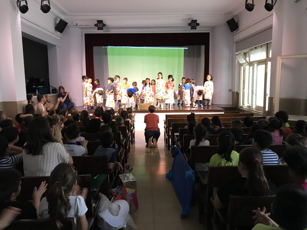 Matí al teatre de l’escola, on la coral OP ha obert cantant per donar pas a tots els grups de l’escola, que han compartit els increïbles fruits recollits al llarg de l’any.