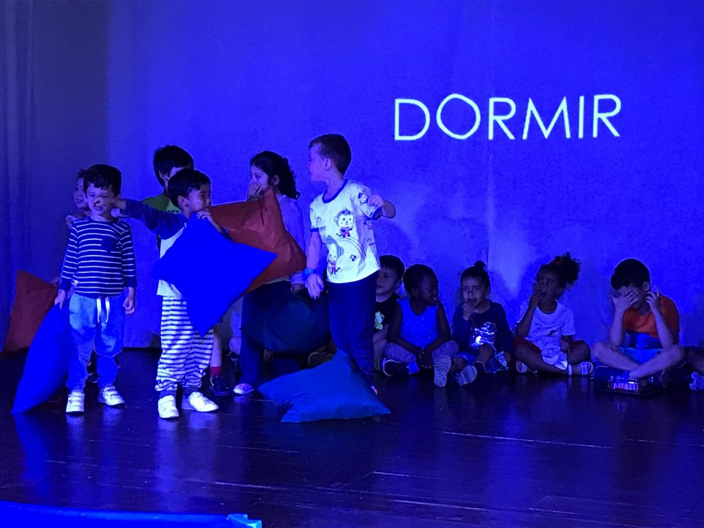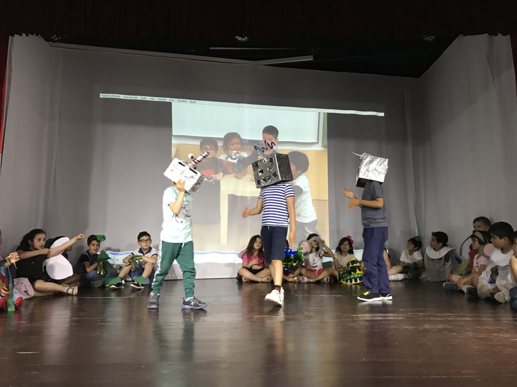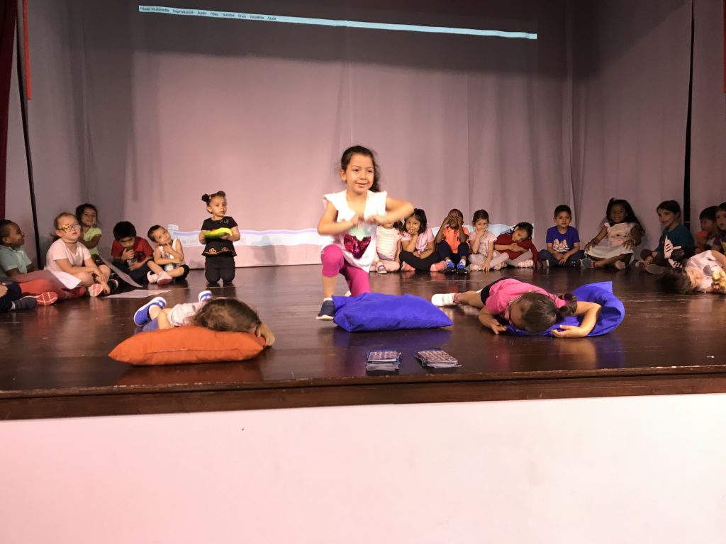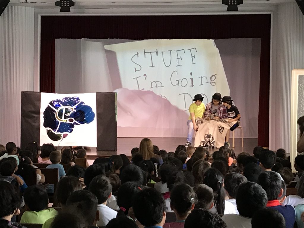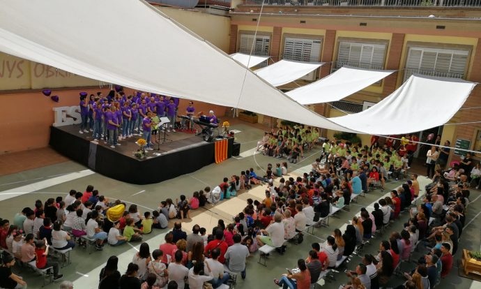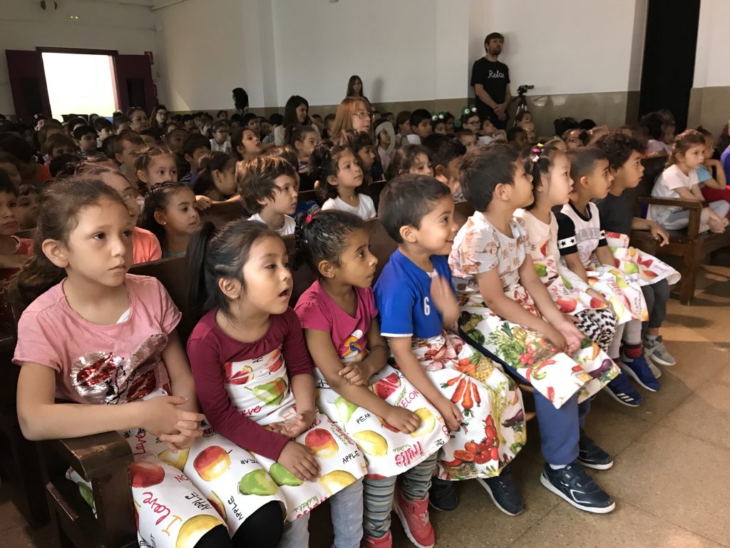 Matí al teatre de l’escola, on la coral OP ha obert cantant per donar pas a tots els grups de l’escola, que han compartit els increïbles fruits recollits al llarg de l’any.