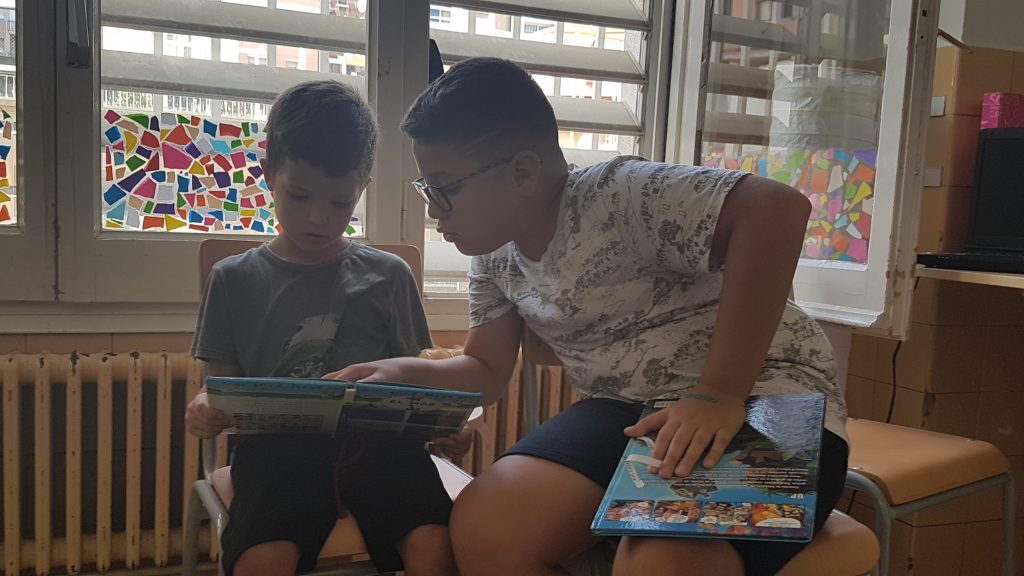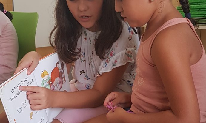 Els alumnes de cinquè fem de padrins lectors dels nostres companys de primer. Passem una estona llegint junts cada setmana.
