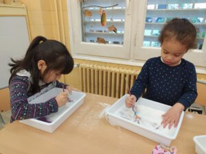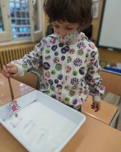 Descobrim lletres, paraules i grafisme creatiu patinant sobre gel. A través del joc sensorial desenvolupem la motricitat fina ❄️❄️