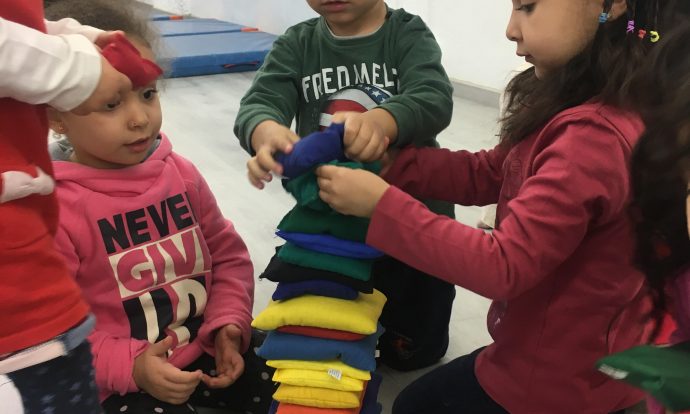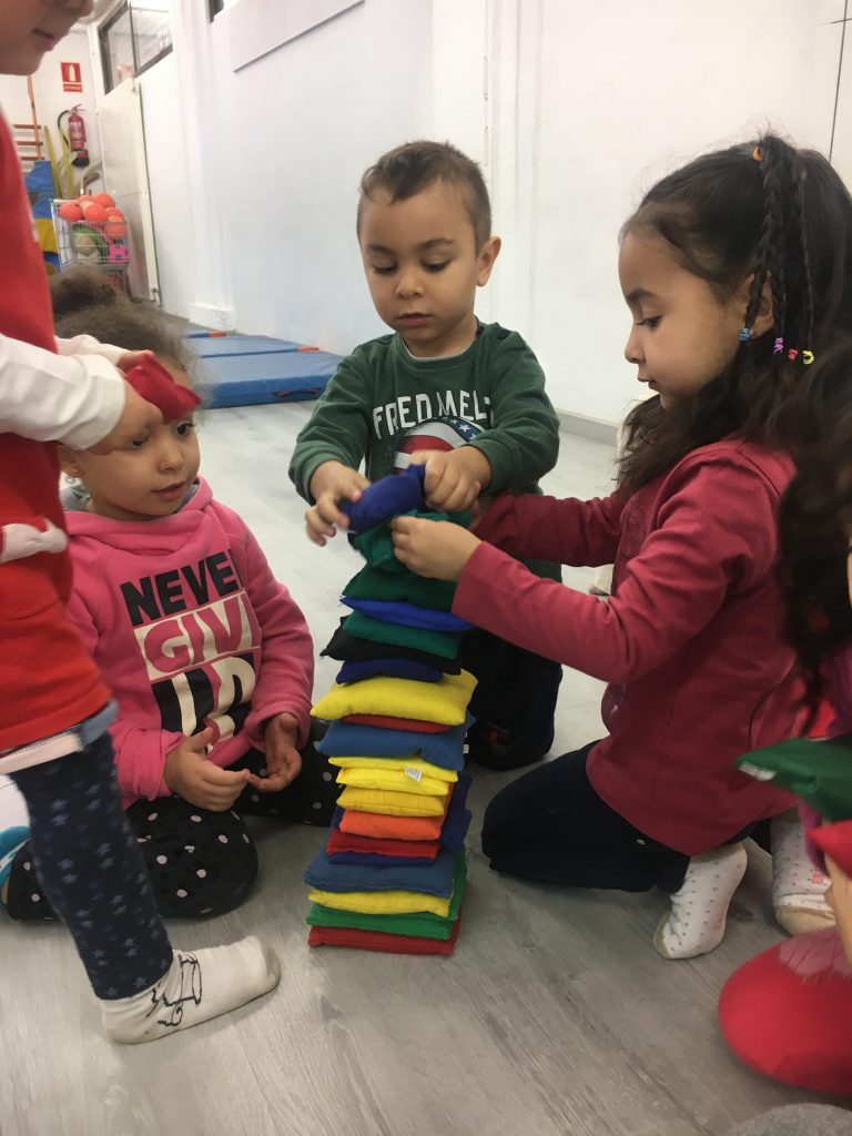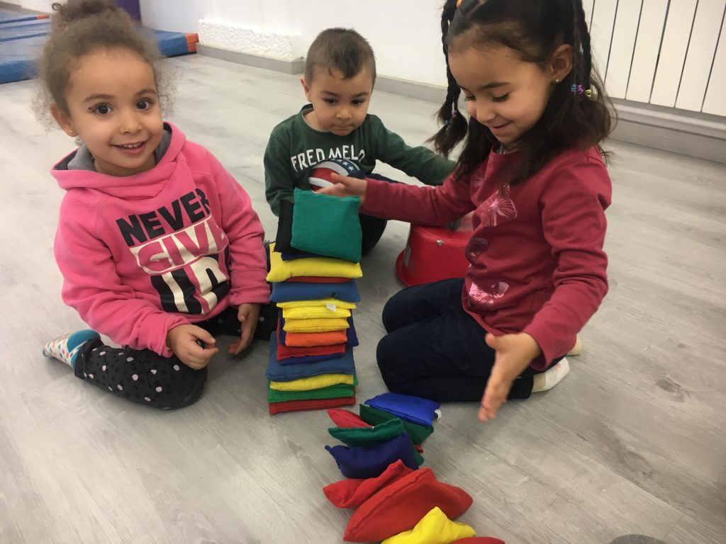 Avui a l’ambient ens emocionem hem sentit curiositat pels saquets de sorra, ja que algun pesaven més que d’altres. Els hem tocat, agafat i mirat i hem pogut classificar-los en els que pesen molt i els que pesen poc. A més, gràcies a aquesta classificació, hem pogut fer una torre posant els que més pesaven abaix perquè no caigués. Per últim, hem comptat quants saquets hem utilitzat per fer aquesta gran torre entre uns quants.