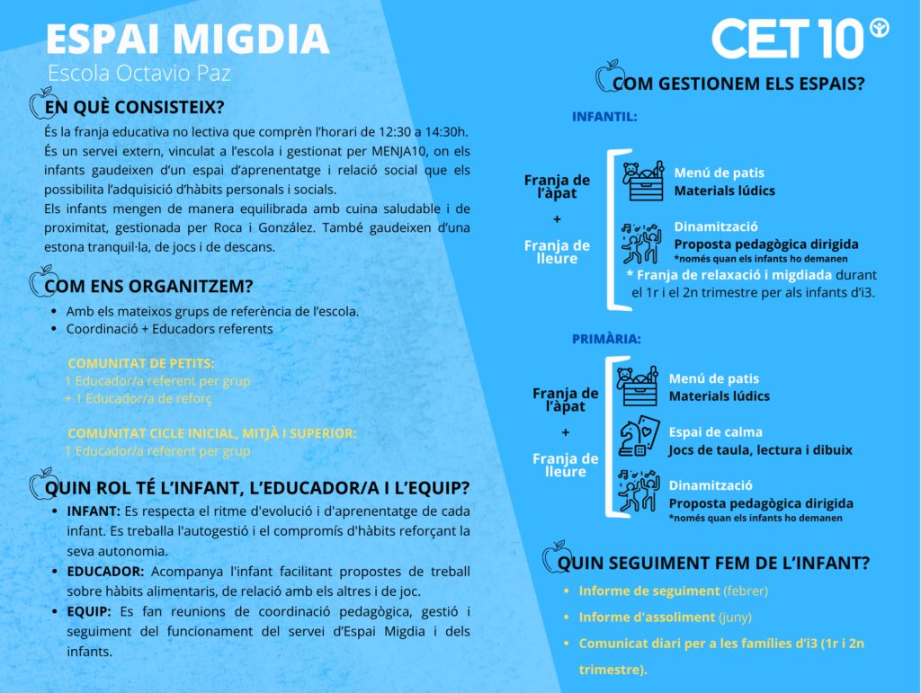 - Per posar-se en contacte amb la coordinació de l’espai migdia: espaimigdia@escolaop.cat